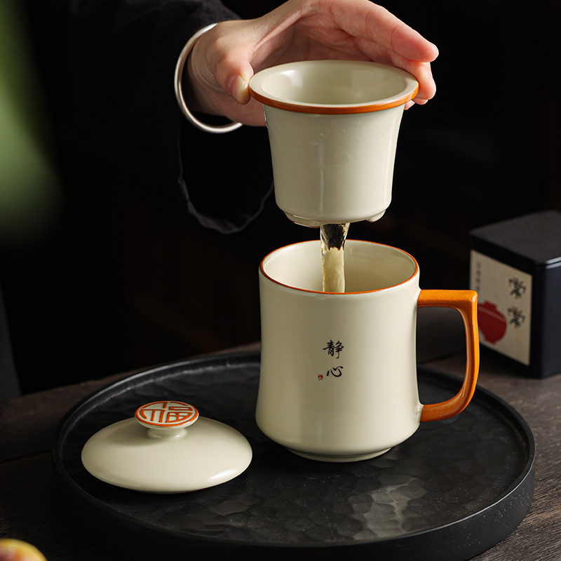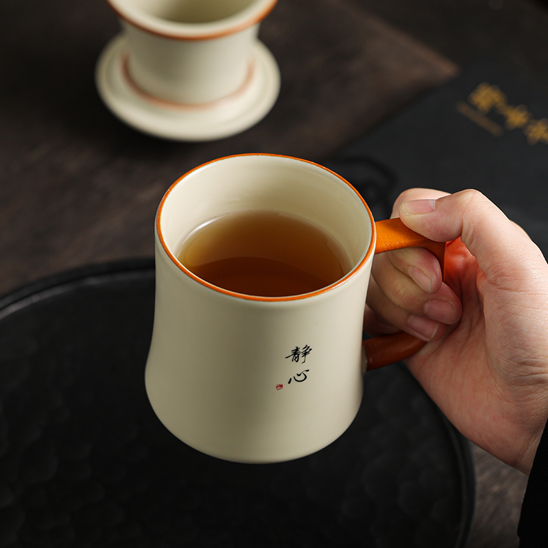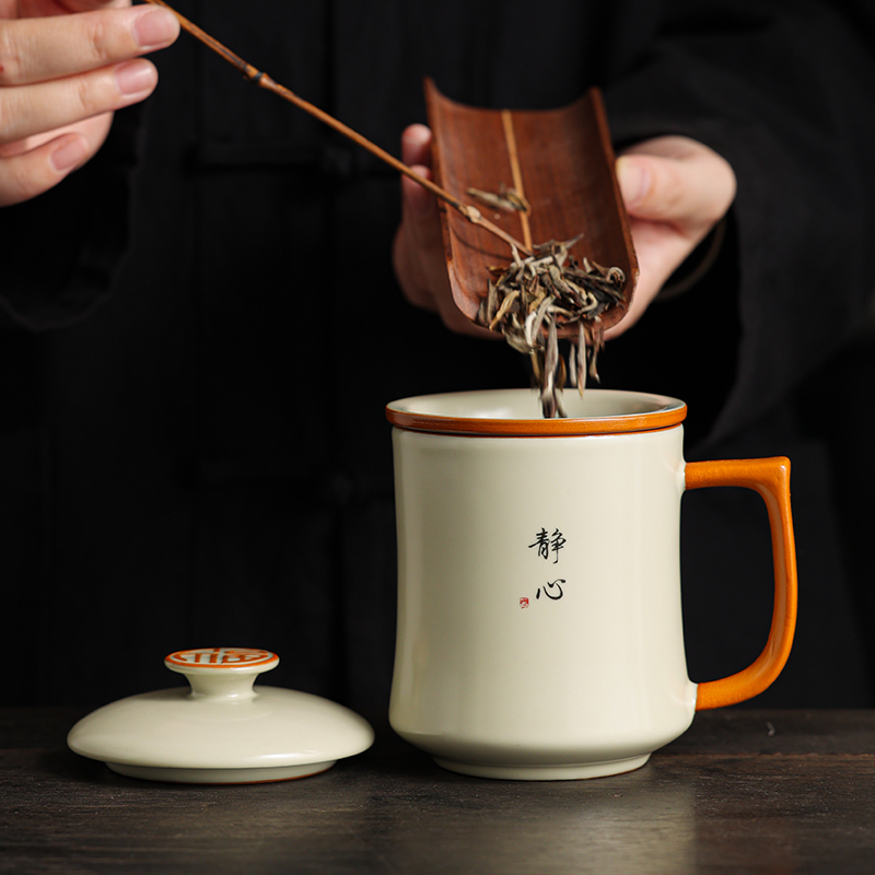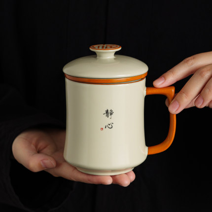 陶瓷茶杯大容量带盖专用水杯个人办公室泡茶杯子高端纯手写定制