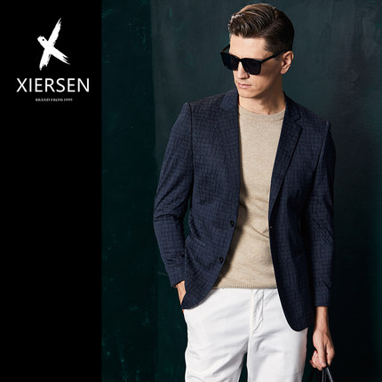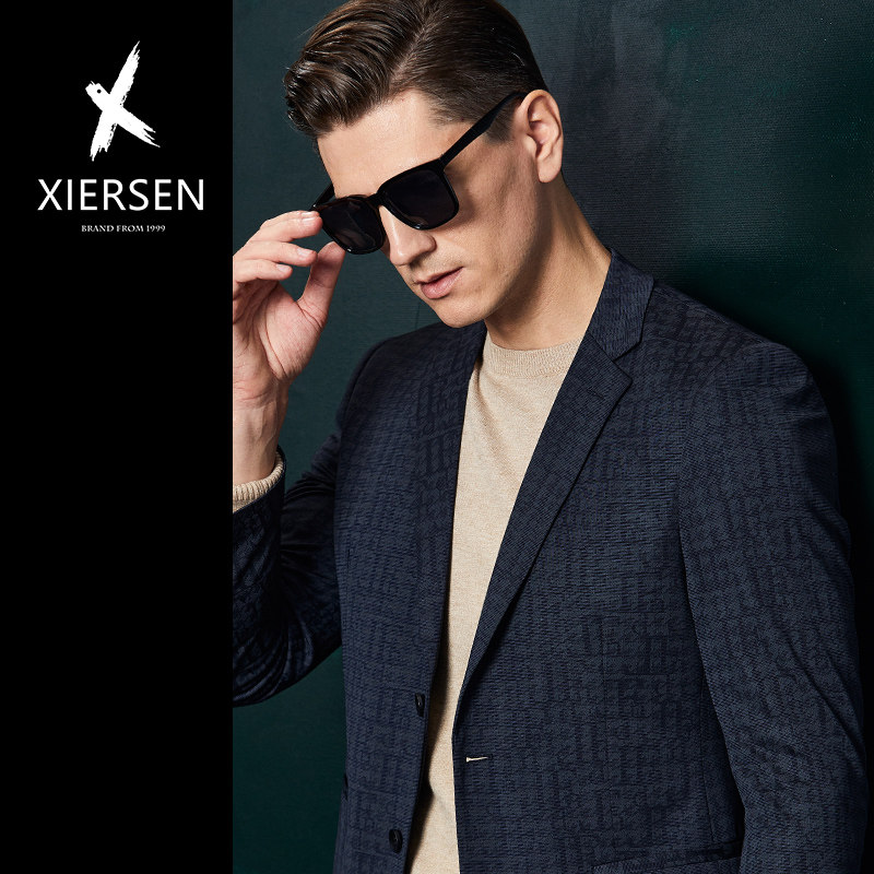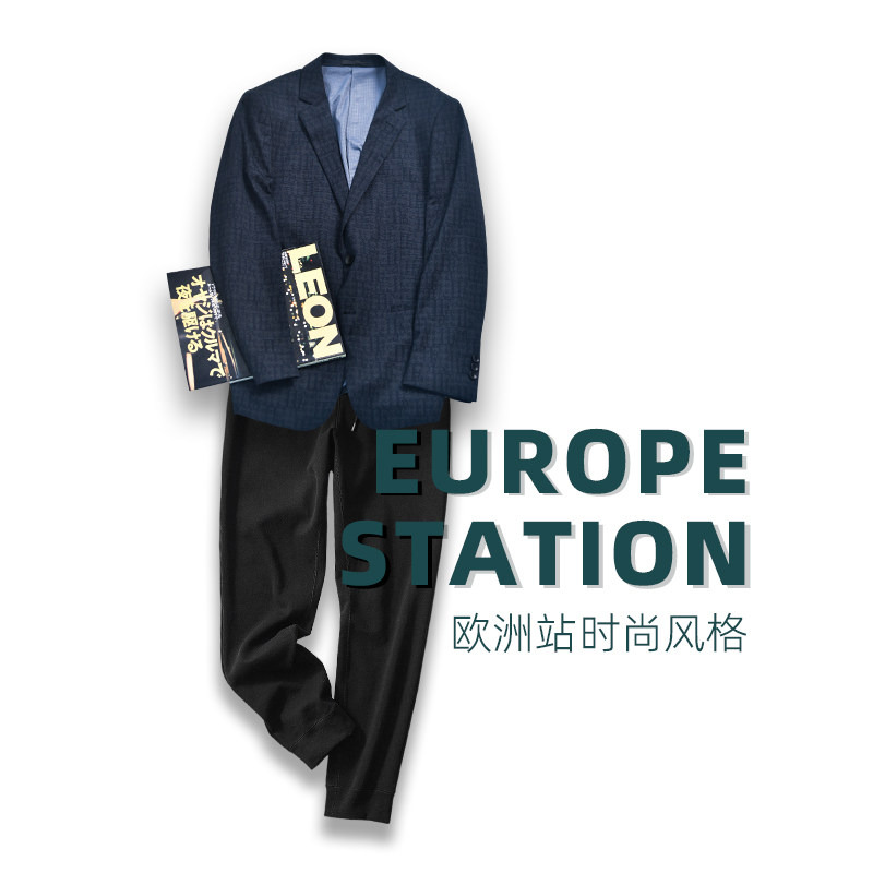 春秋欧洲站新款轻奢小西装男士外套单西便西商务休闲西服上衣修身