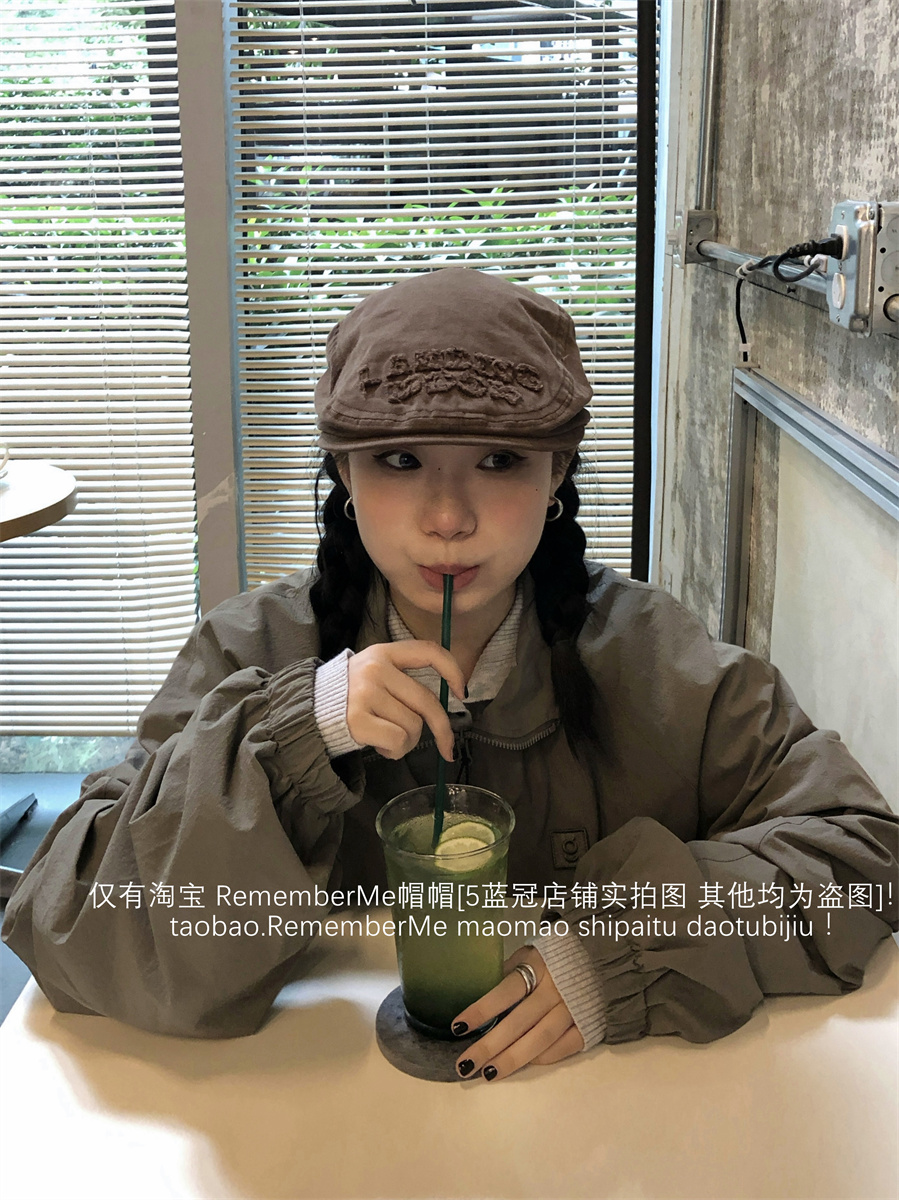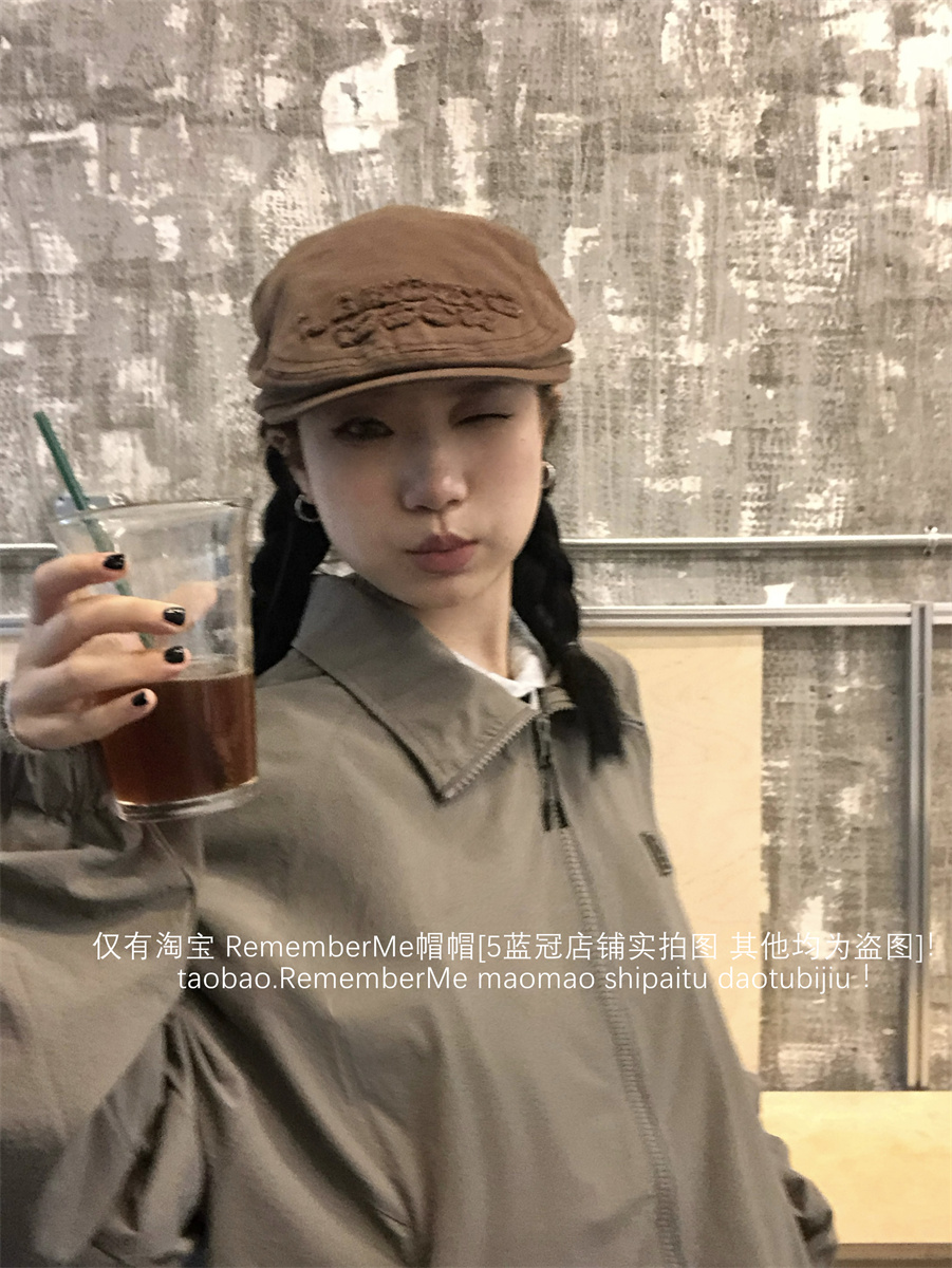 【日常好搭配】小众毛边字母刺绣软顶前进帽古着感咖啡色鸭舌帽潮