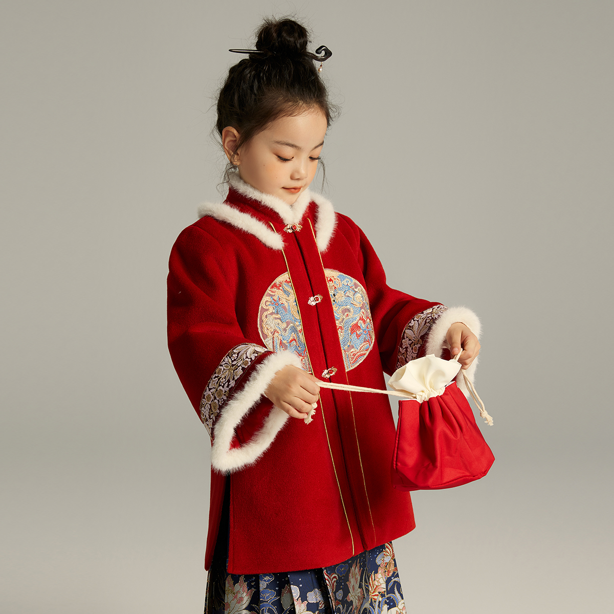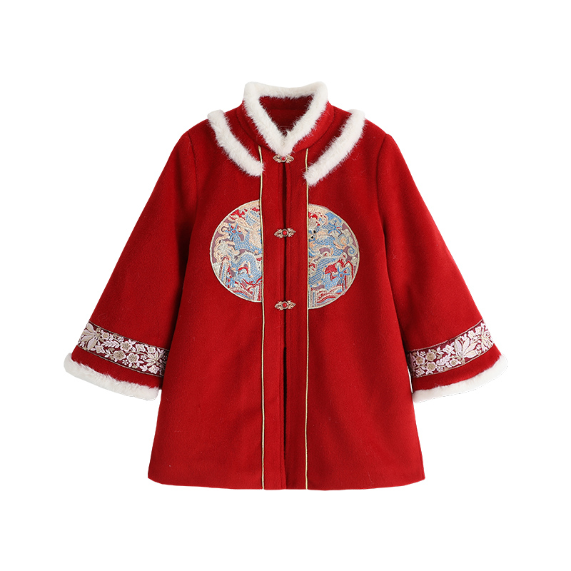 沫沫童装女童新年红色外套国风冬季2025秋冬季新款儿童过年