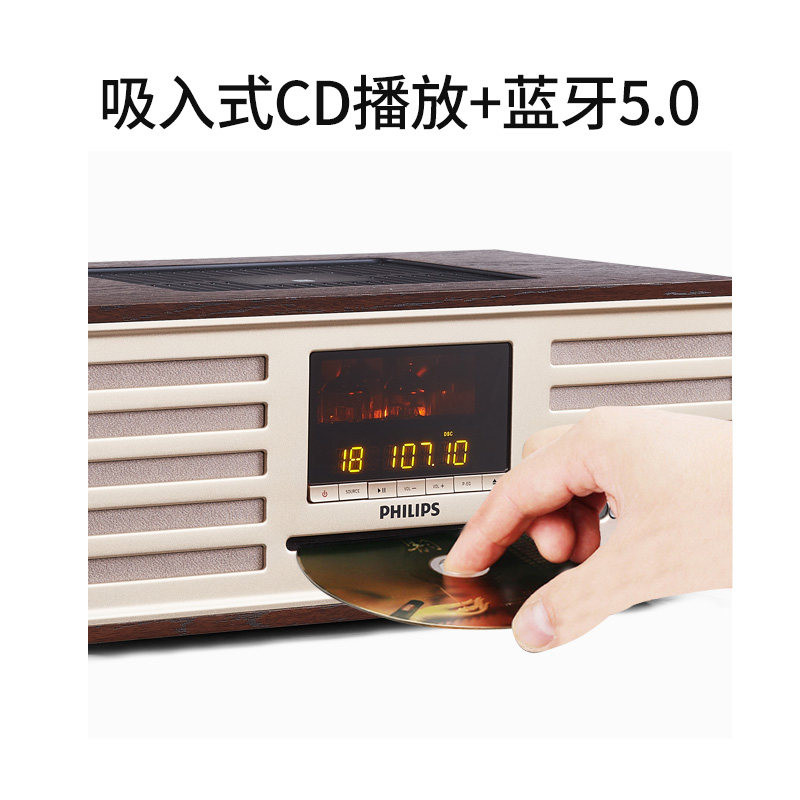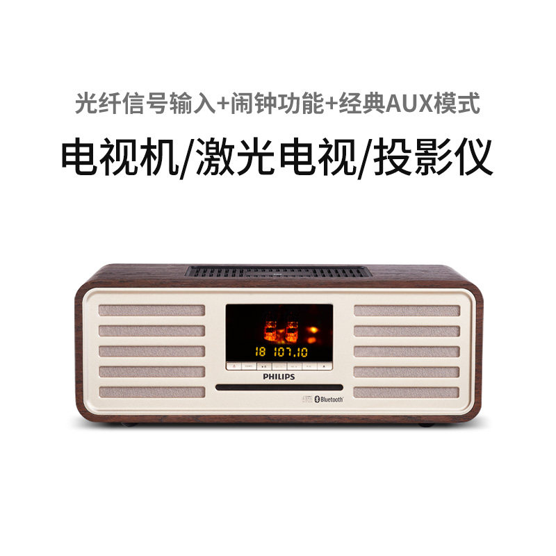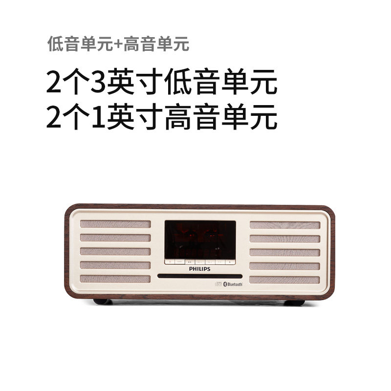飞利浦PHILIPS经典复古家用蓝牙电视桌面音响HIFI收音CD播放机