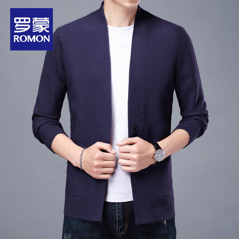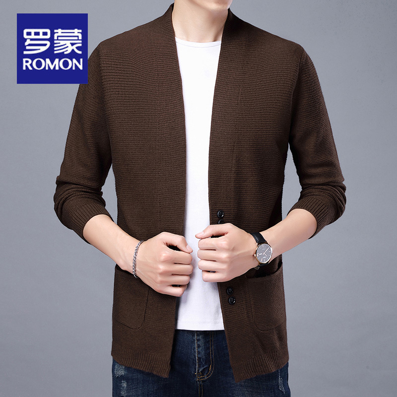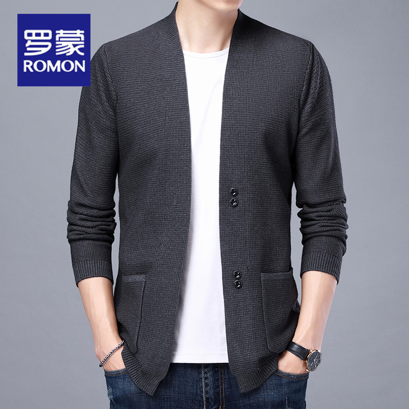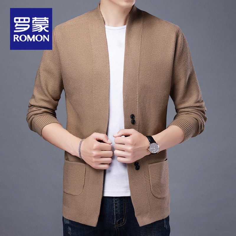 罗蒙纯色四扣男士针织衫商务休闲免烫开衫外套2024春秋新款毛衣男