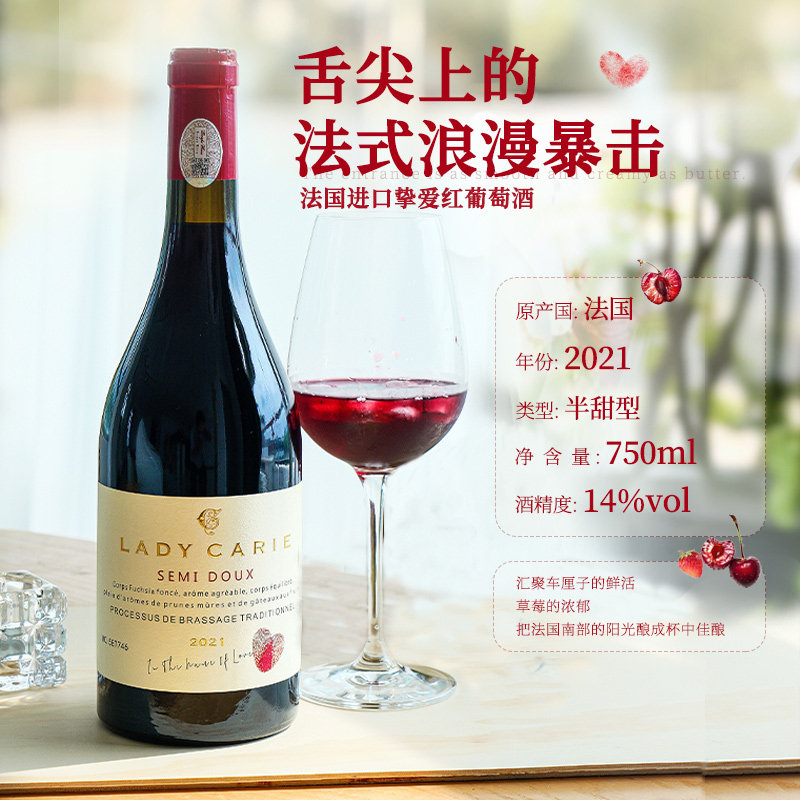 法国进口红酒半甜红葡萄酒煮热红酒微醺女生原酒进口礼盒装