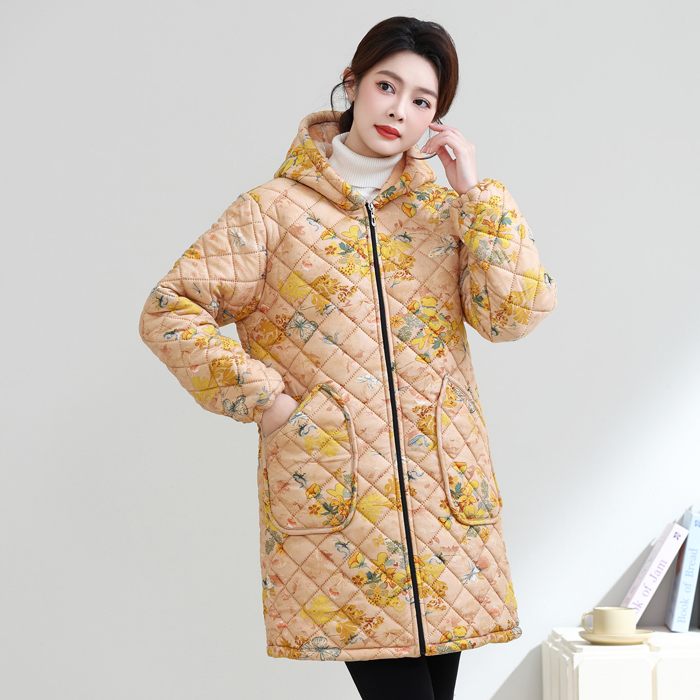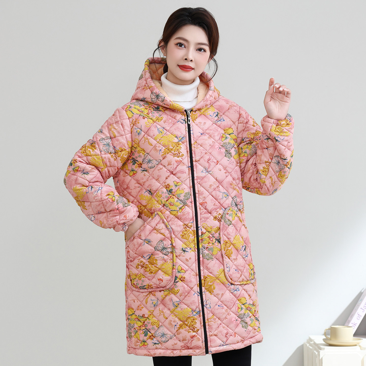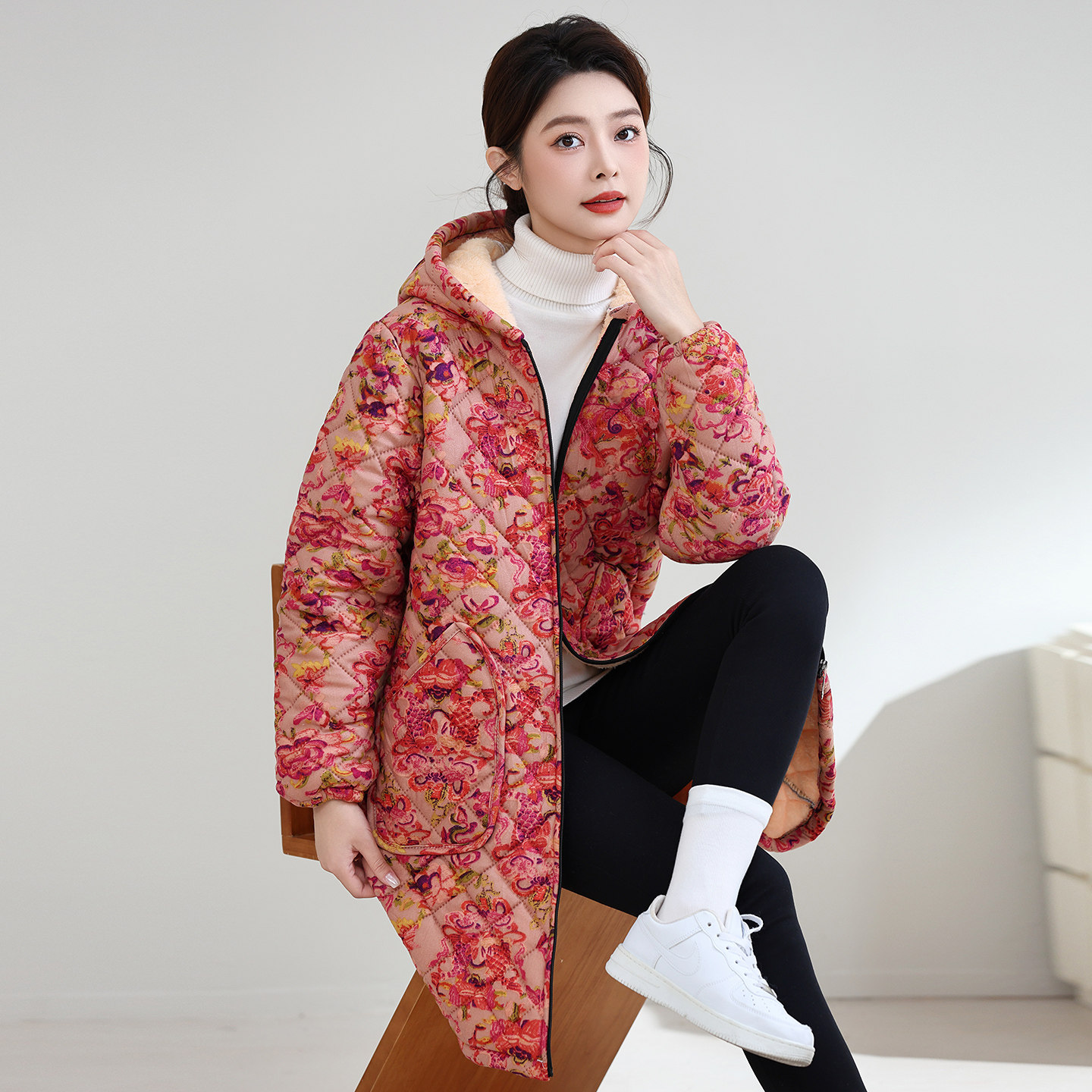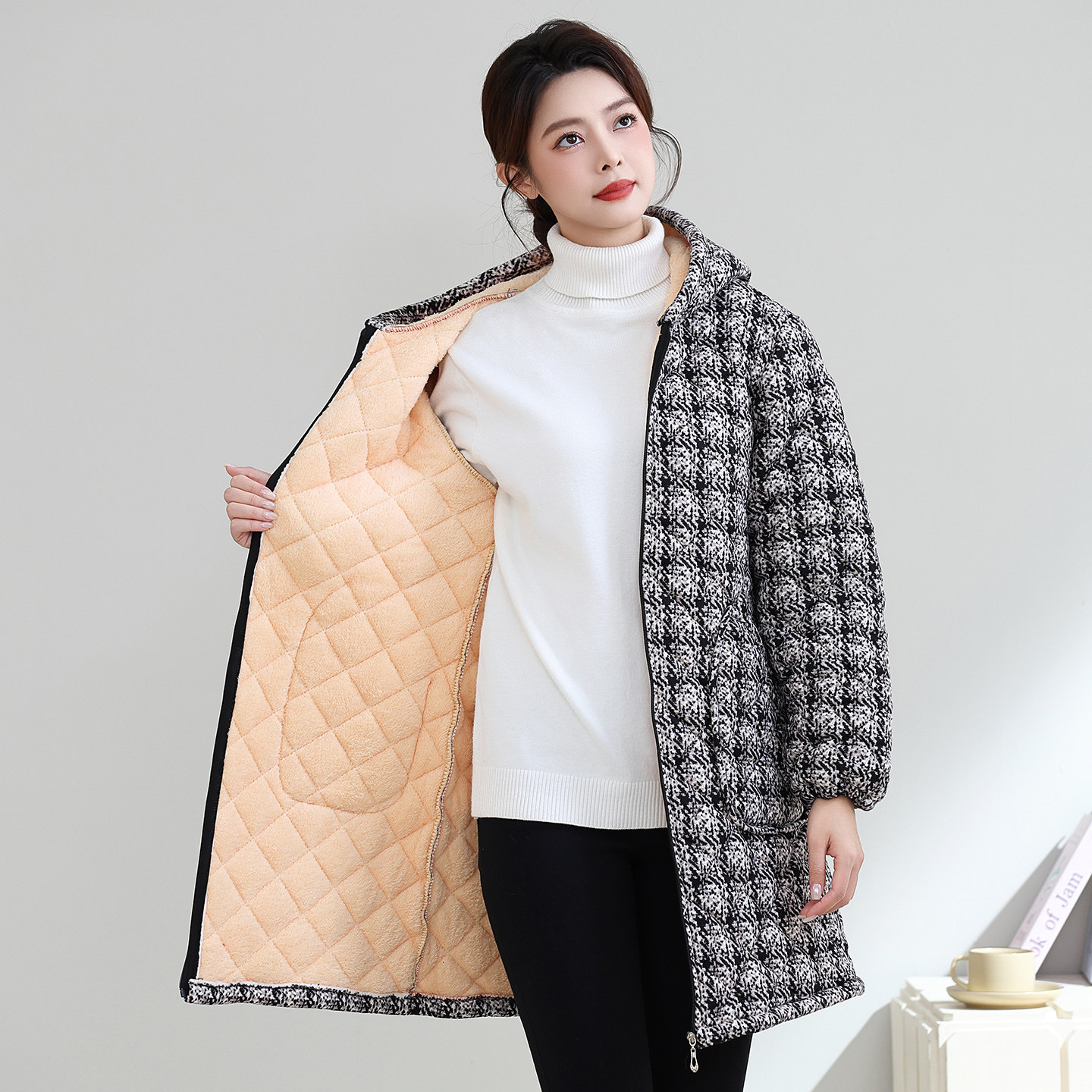 新款女装连帽加绒加厚棉衣外套妈妈中长款棉服保暖大码棉袄罩衣