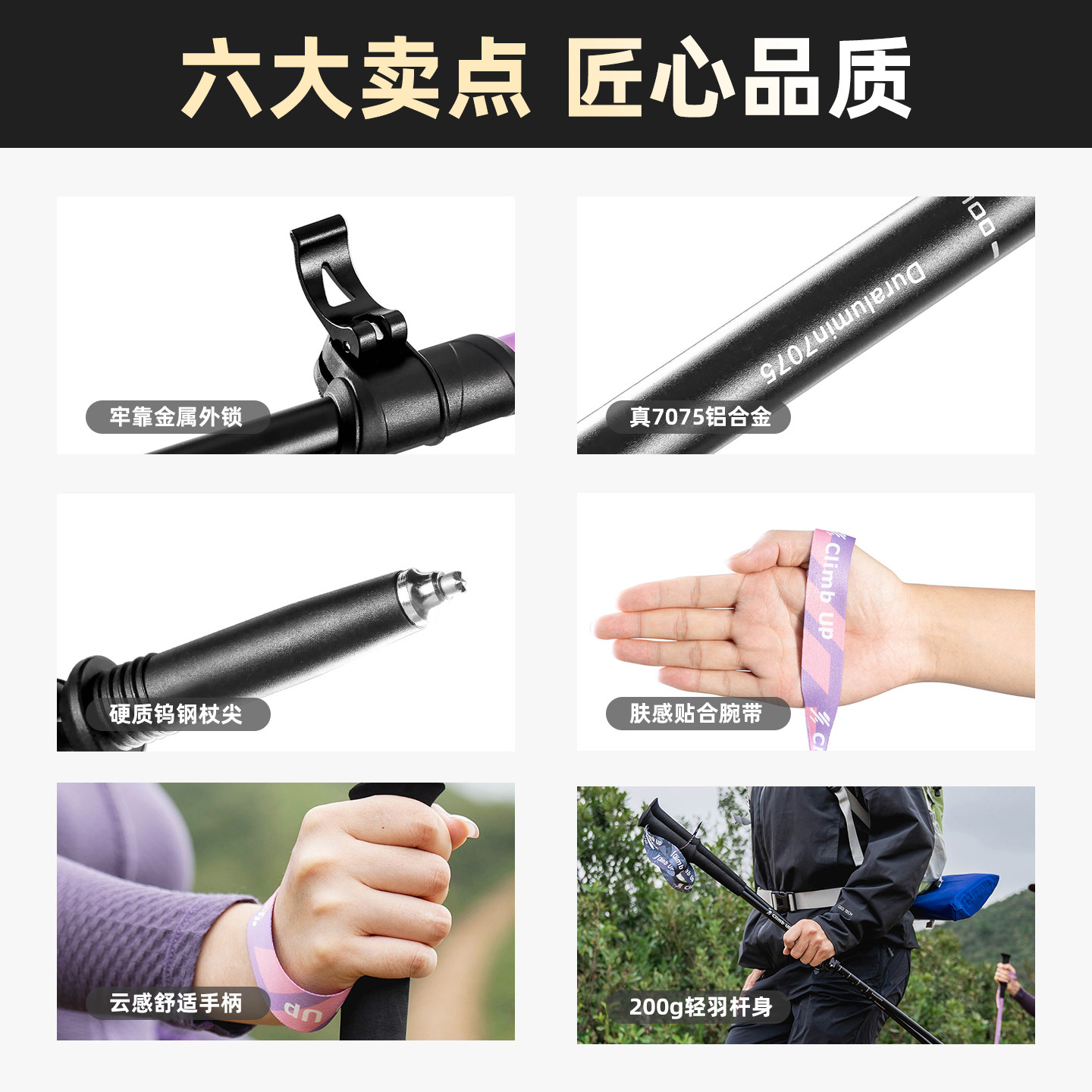 Climbup登山杖户外专业伸缩铝合金爬山拐杖行山轻手杖登山棍徒步