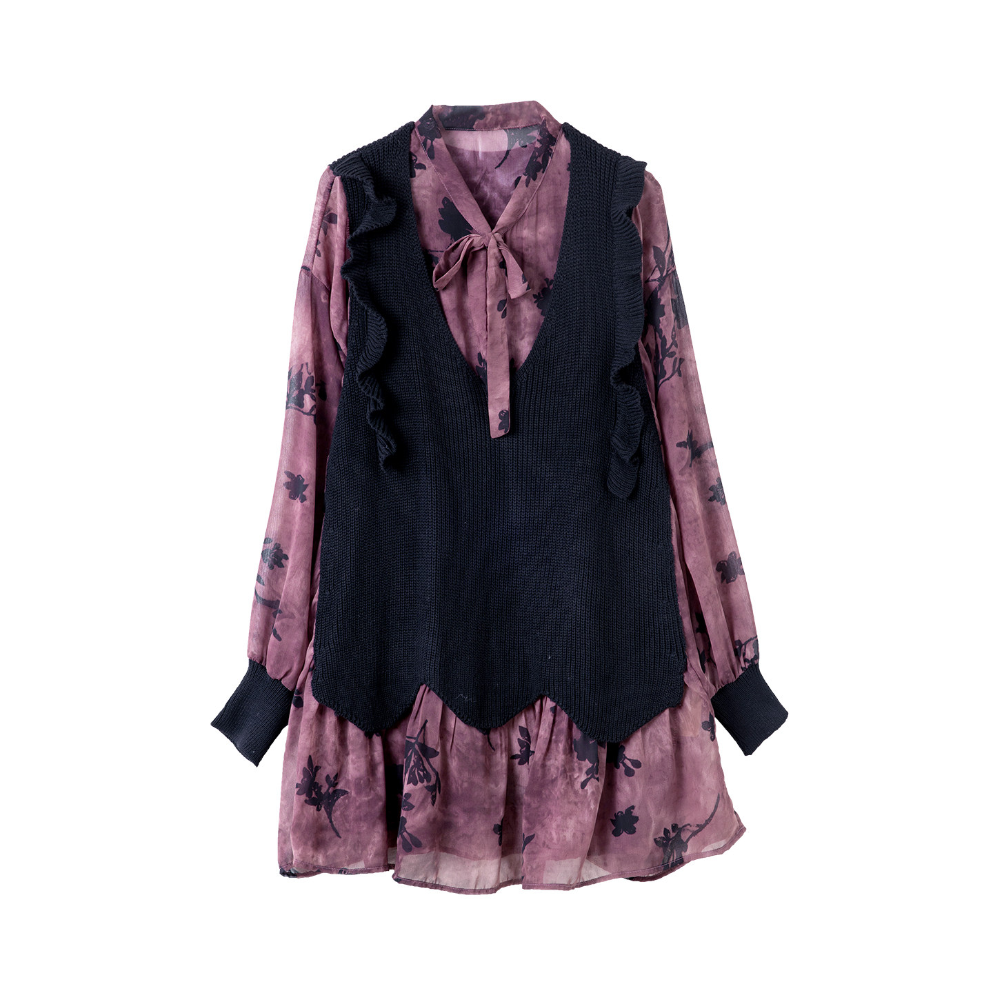 宝诗黎假两件拼接印花衬衫