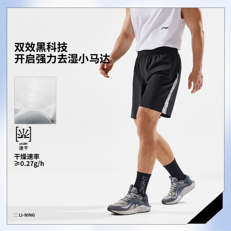 李宁健身系列男子速干凉爽冰感舒适百搭运动短裤AKSV427