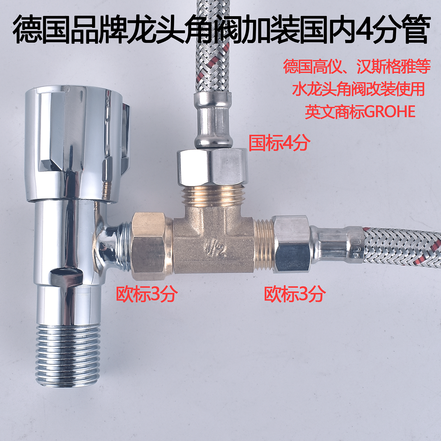 铜4分转3分活接三通G3/8适用德国高仪欧标水龙头美制9/16分水接头