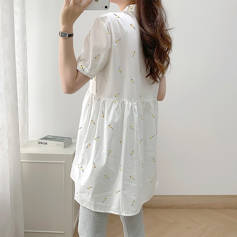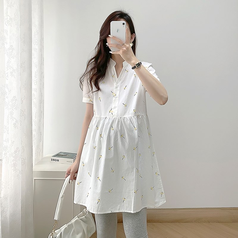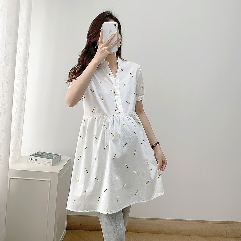 孕妇连衣裙夏装新k款短袖纯棉V领刺绣裙时尚大码宽松薄款女衬衣裙