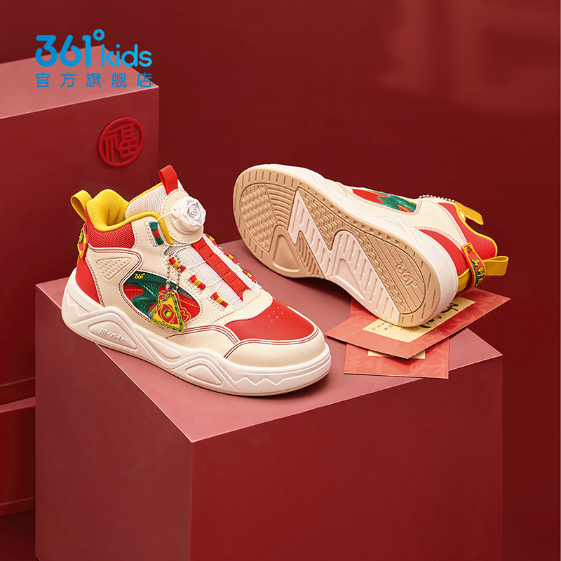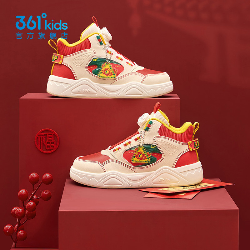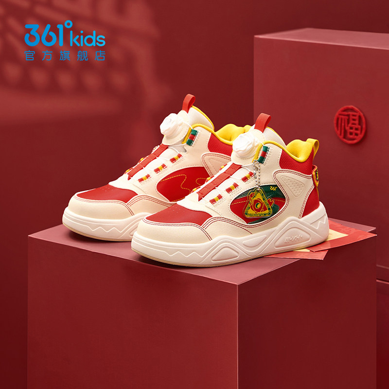 新年红色361°童鞋儿童板鞋高帮男童鞋运动休闲鞋2026春款女童鞋