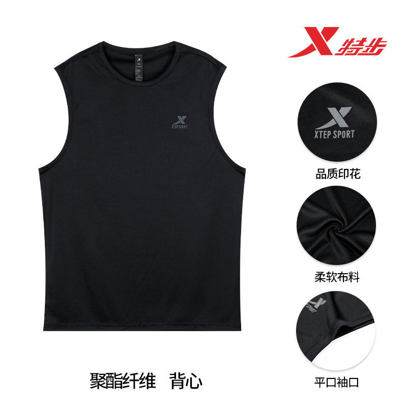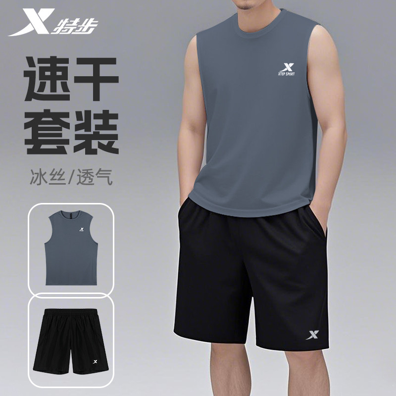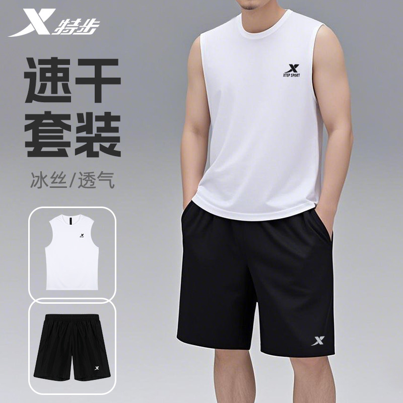 特步夏季背心运动套装男中老年父亲休闲无袖T恤爸爸宽松跑步服