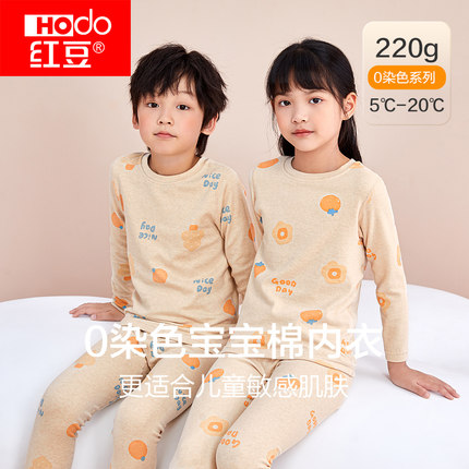 红豆儿童天然彩棉内衣套装男童女童秋衣秋裤大童纯棉保暖睡衣抗菌