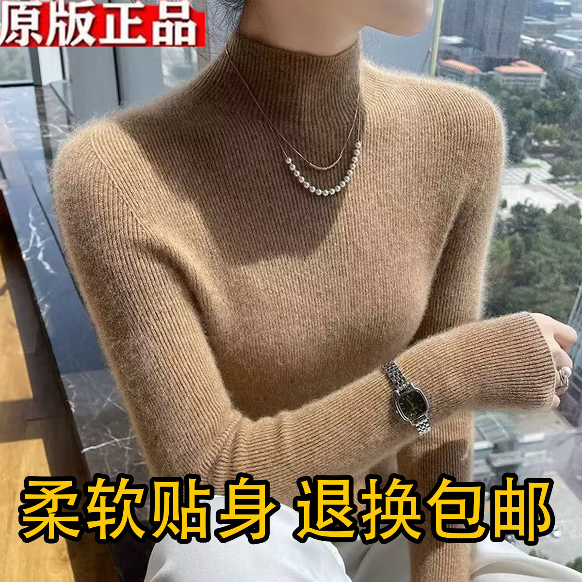 2025新款羊毛衫女秋冬紧身打底修身显瘦100纯羊毛半高领洋气百搭