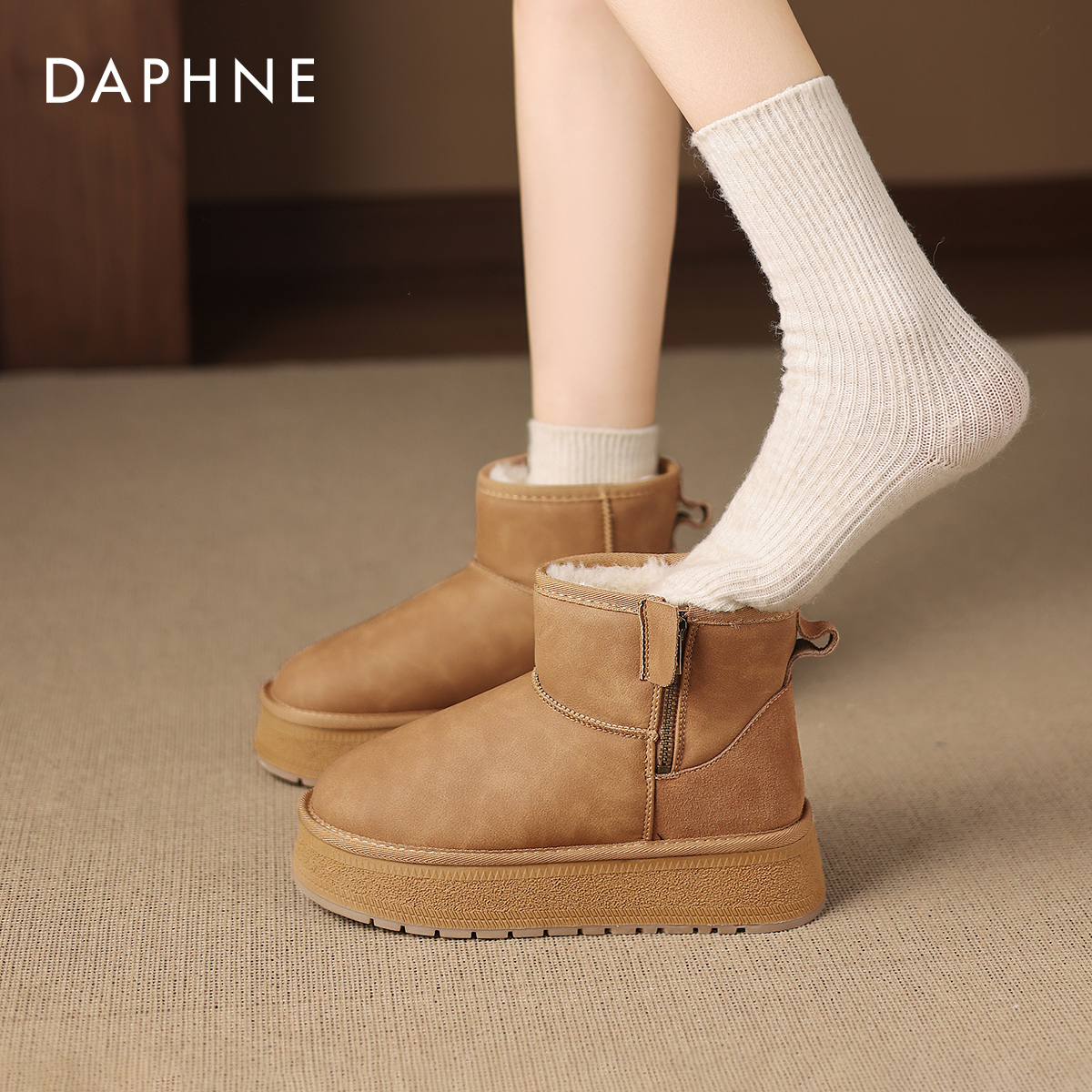 达芙妮厚底雪地靴女款2025新款冬季女鞋加绒保暖棉鞋东北面包棉靴
