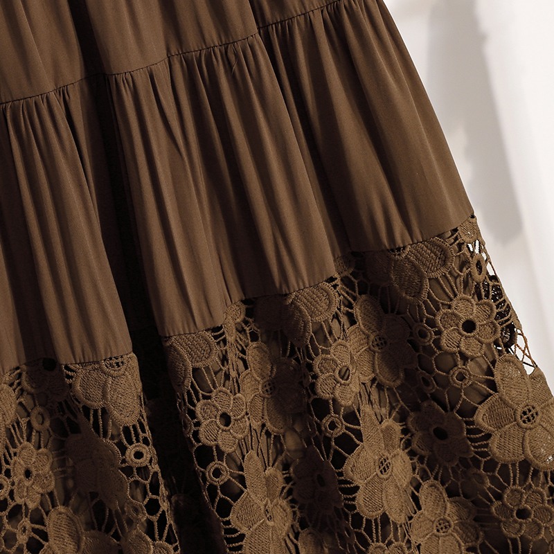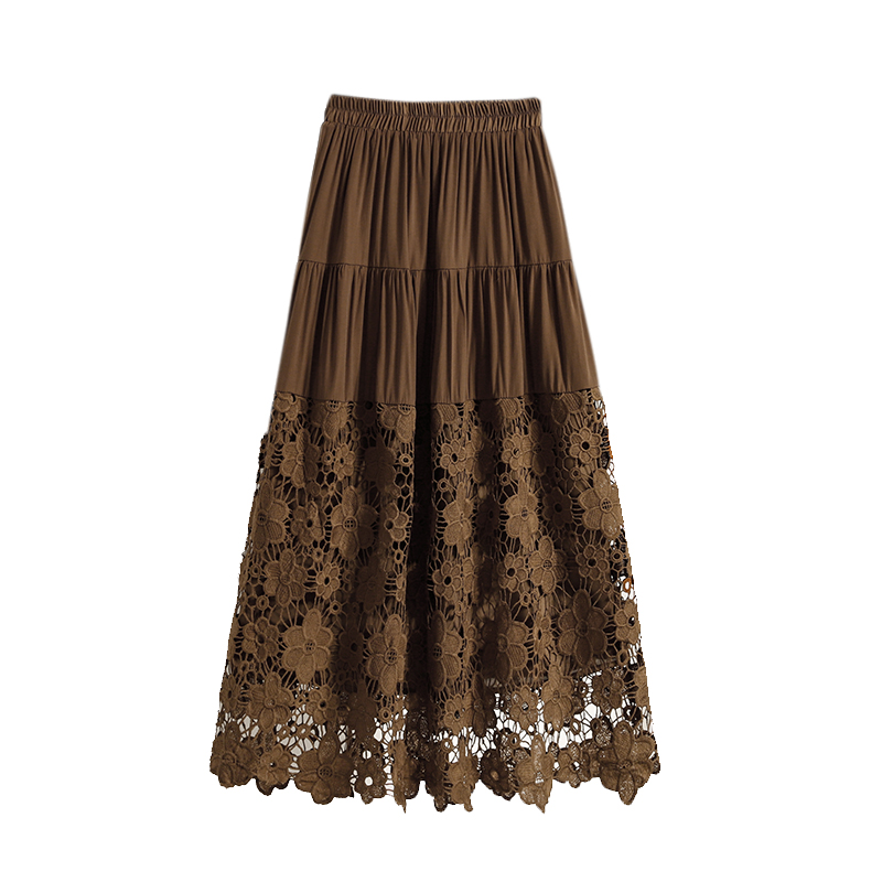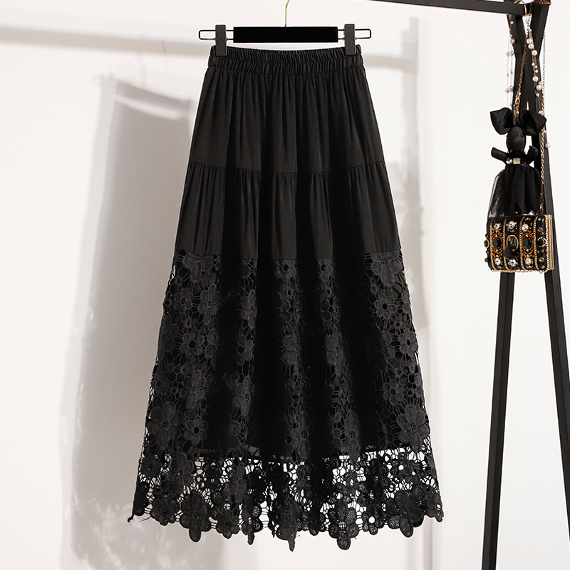 2025秋季新款蕾丝镂空拼接气质中长裙大码潮流时尚洋气减龄半身裙