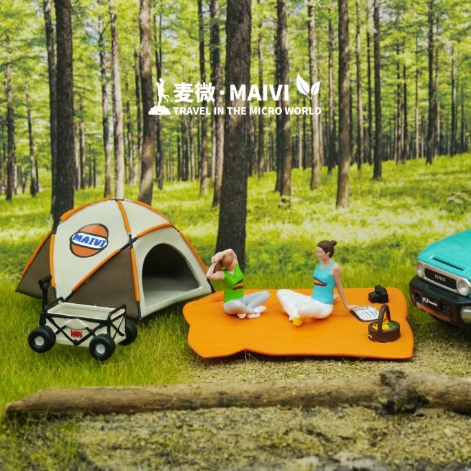1:64麦微人偶烧烤露营野餐苔藓微景观微缩微拍模型配沙盘场景小人