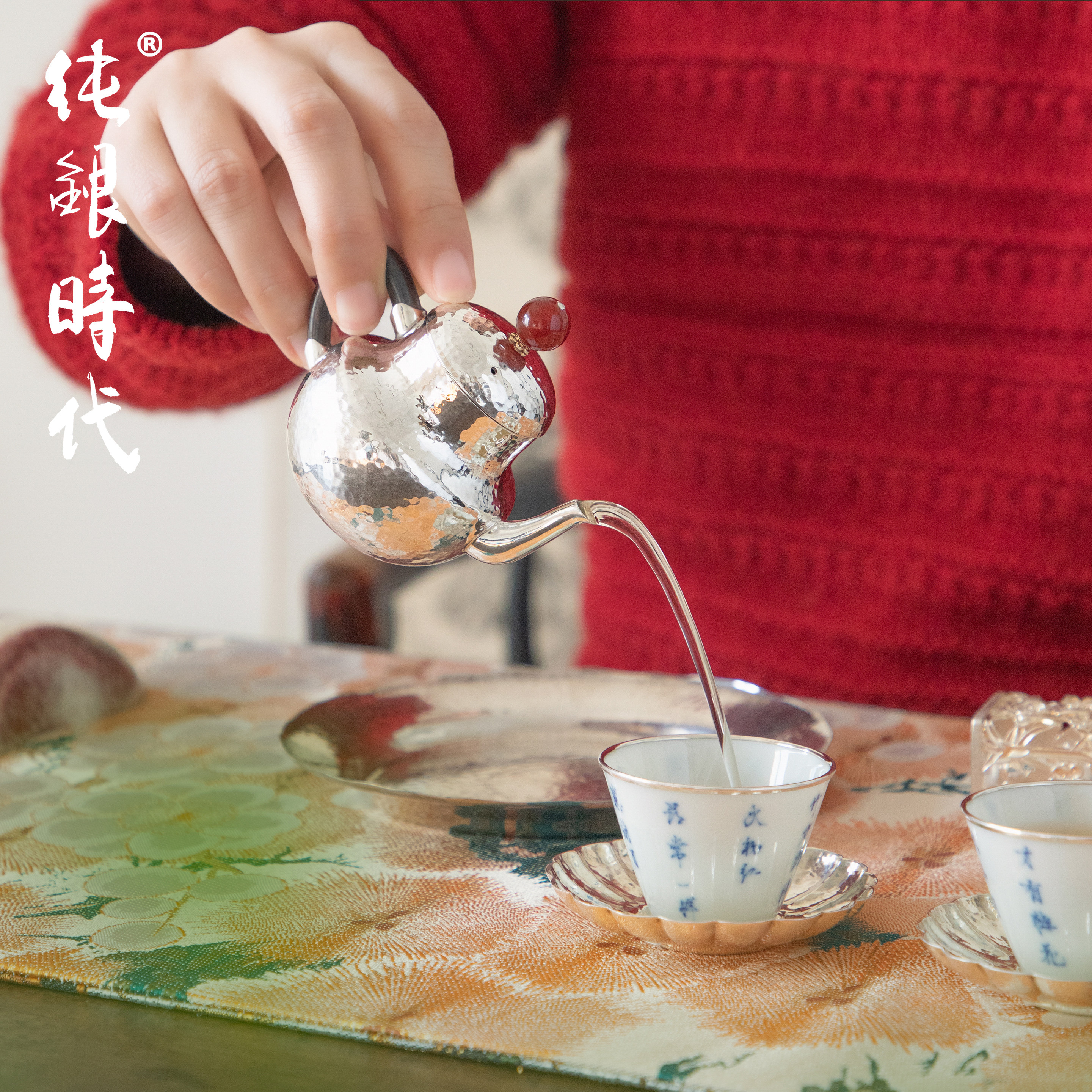 纯银时代手工锤纹纯银泡茶壶