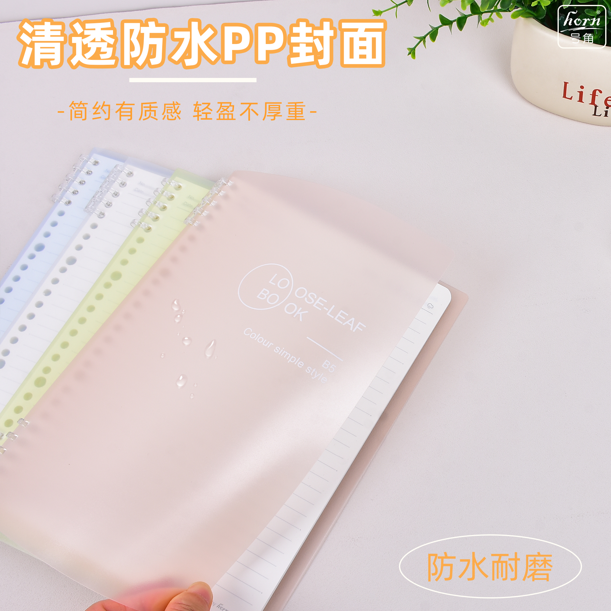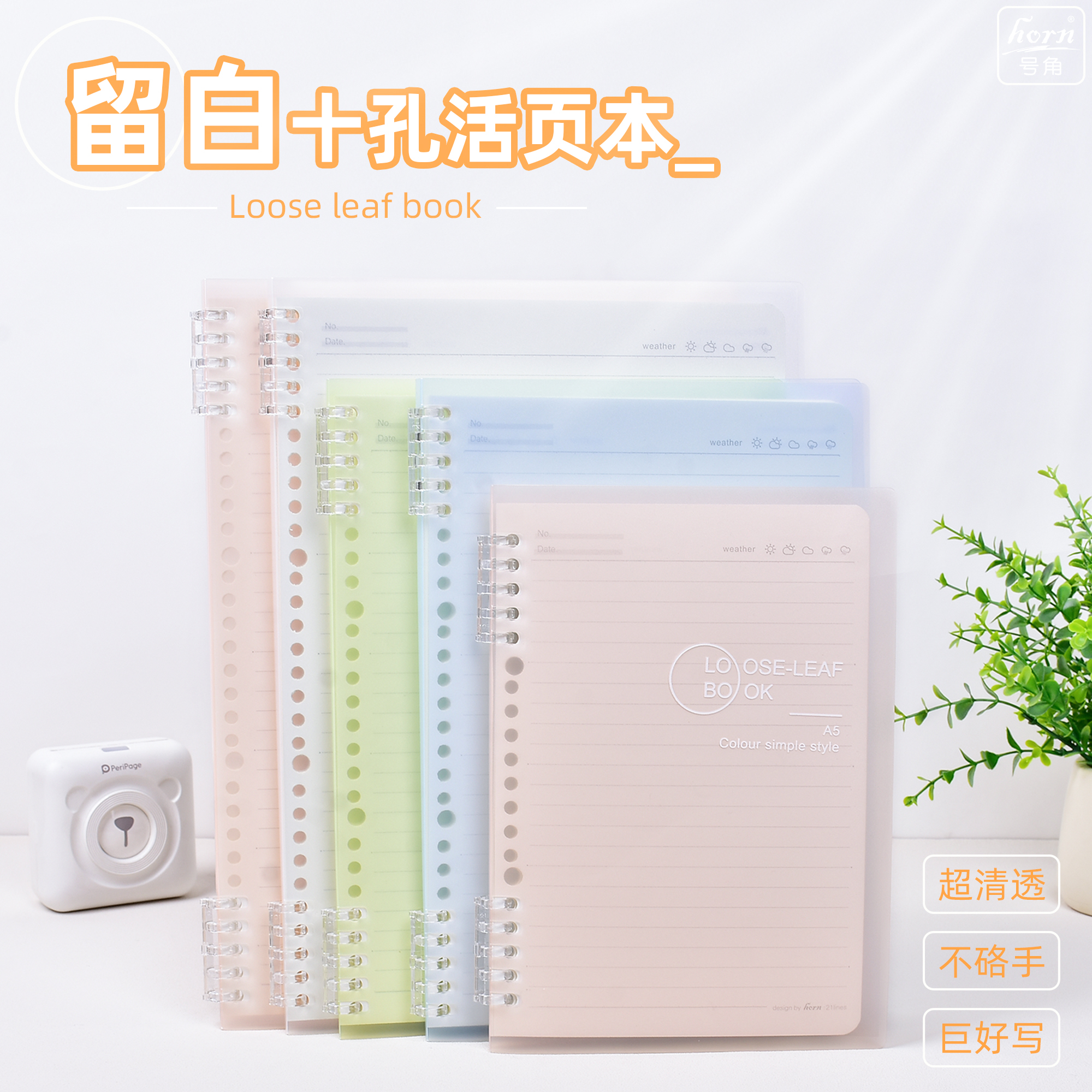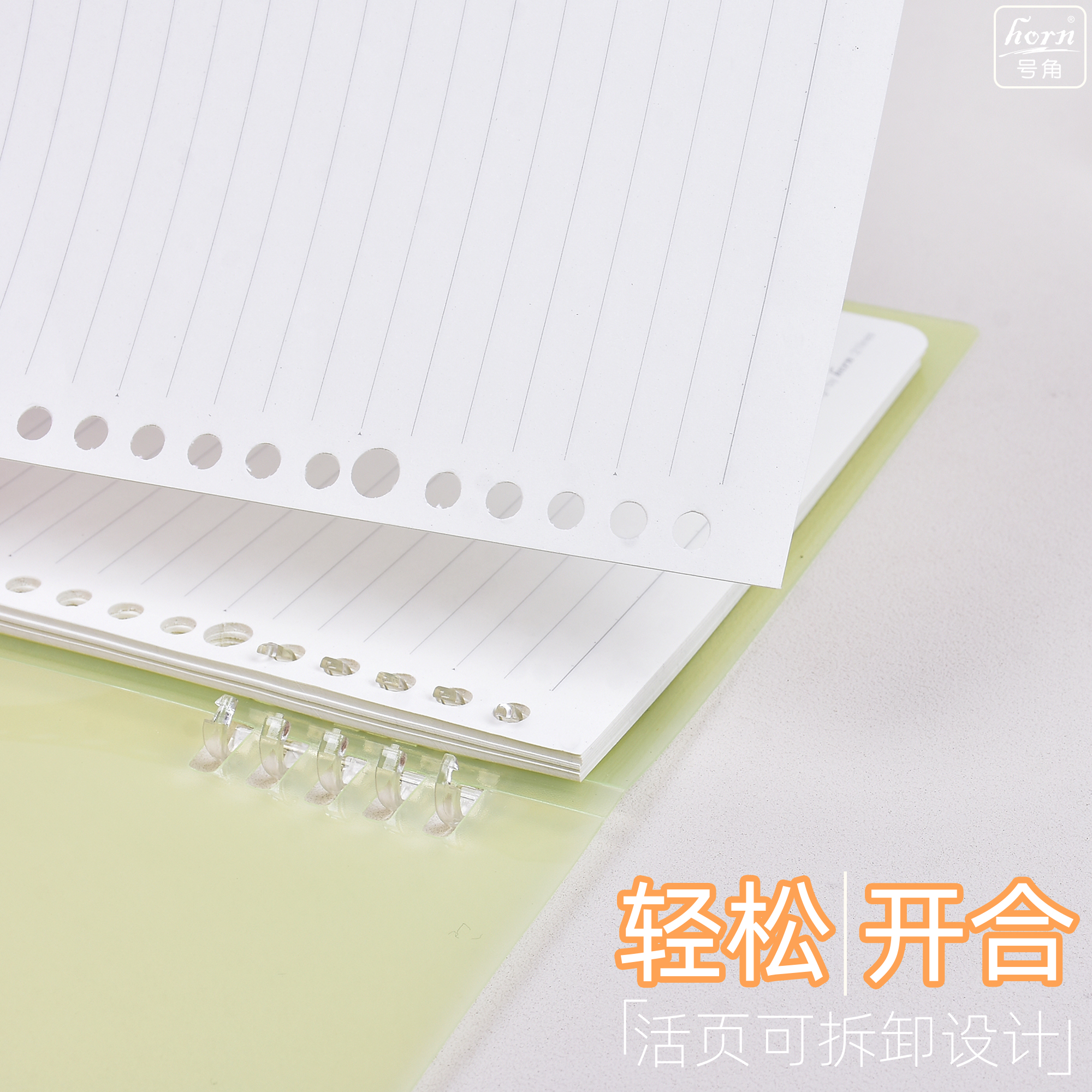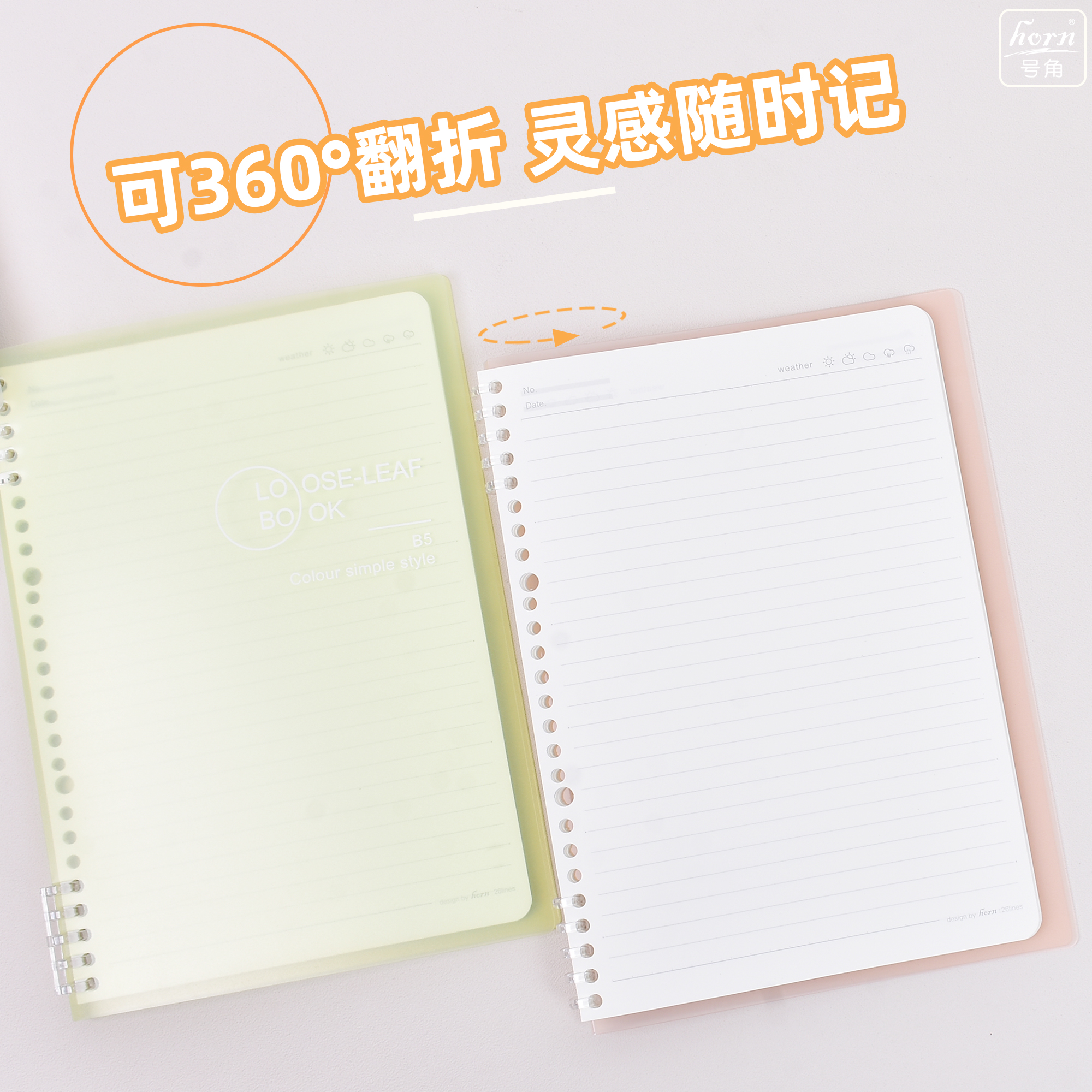 horn号角A5B5A4活页本透明彩色内页可拆卸学生记事本笔记本子