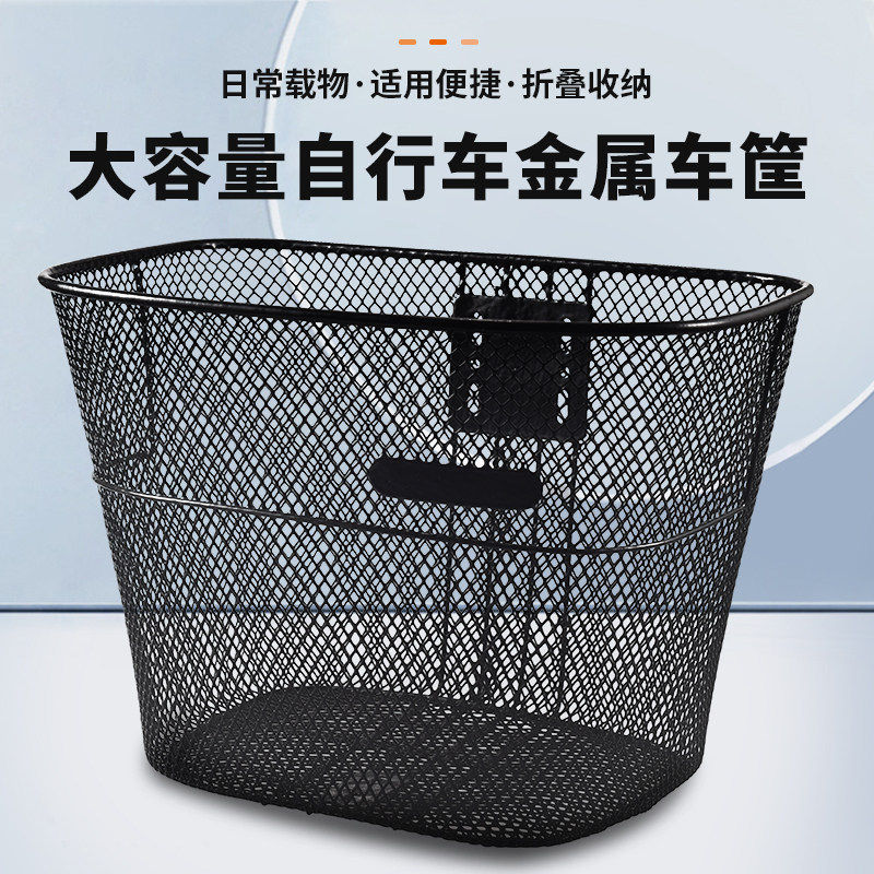 自行车网篮20/22/24/26寸单车通用车筐金属前车篮子挂篮折叠车蓝