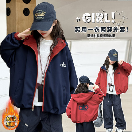 女童外套秋冬装2025新款儿童韩系两面穿上衣洋气夹克衫休闲棒球服