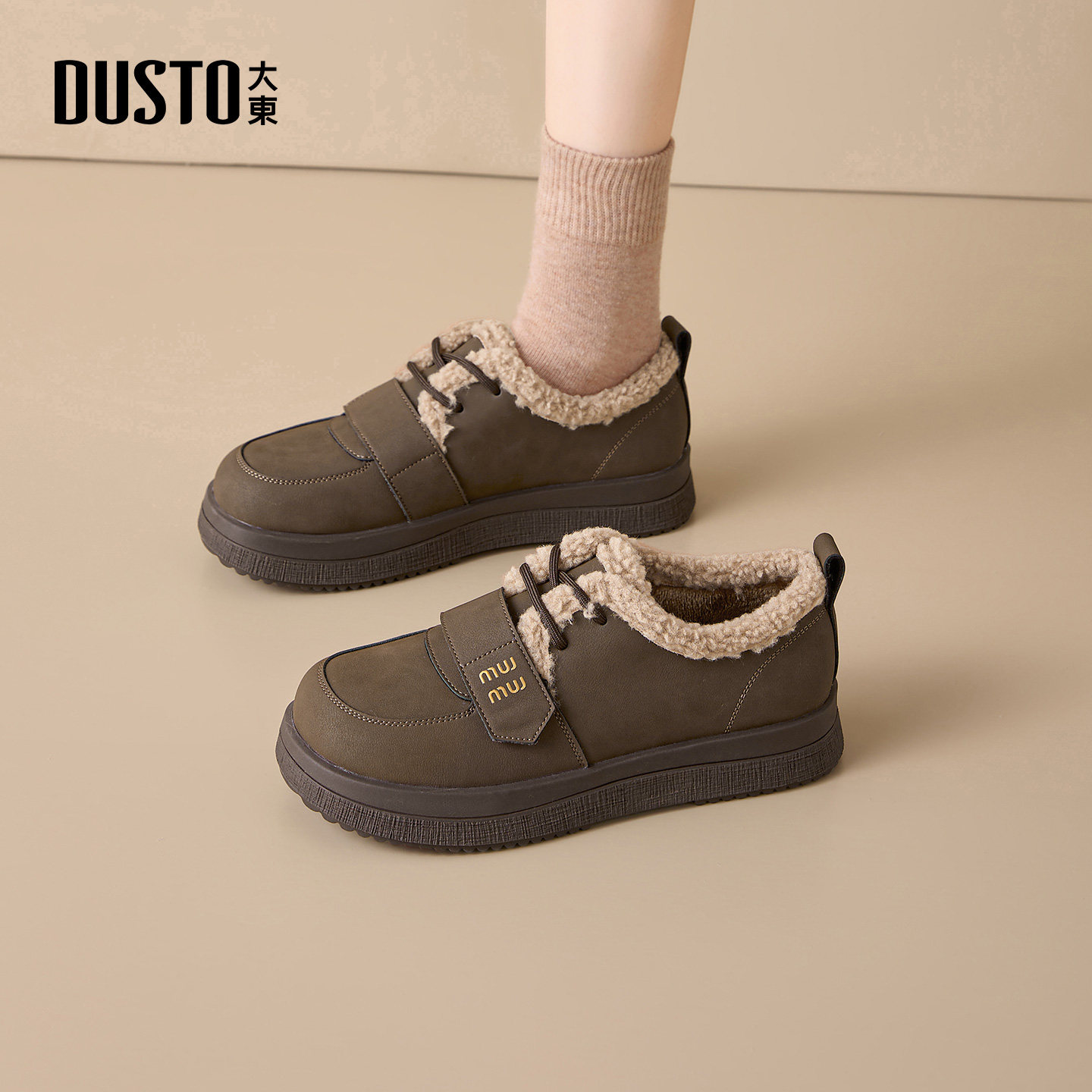 大东女鞋雪地靴2025冬季新款加绒系带勃肯鞋平底女棉鞋休闲女短靴