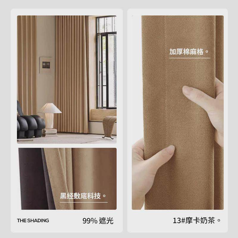 全遮光黑金柯桥窗帘客厅卧室防晒仿麻窗帘布绍兴小格厂家全屋可定