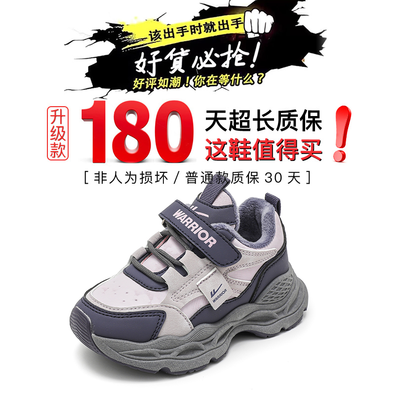 回力童鞋女童皮面鞋子秋冬季2025新款儿童防水棉鞋加绒舒适运动鞋