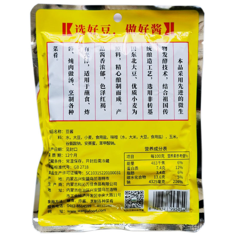 5袋包邮 万佳豆酱350g 科沁万佳黄豆酱东北酱菜香辣酱香其豆瓣酱