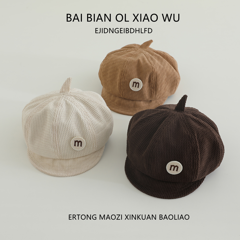 儿童帽子秋冬季保暖防风鸭舌贝雷帽男女宝宝韩系潮流八角画家帽春
