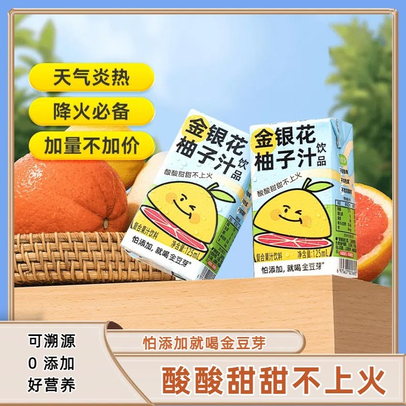 金豆芽金银花柚子汁柚子茶125ml盒装清润饮品无添加山楂汁果汁