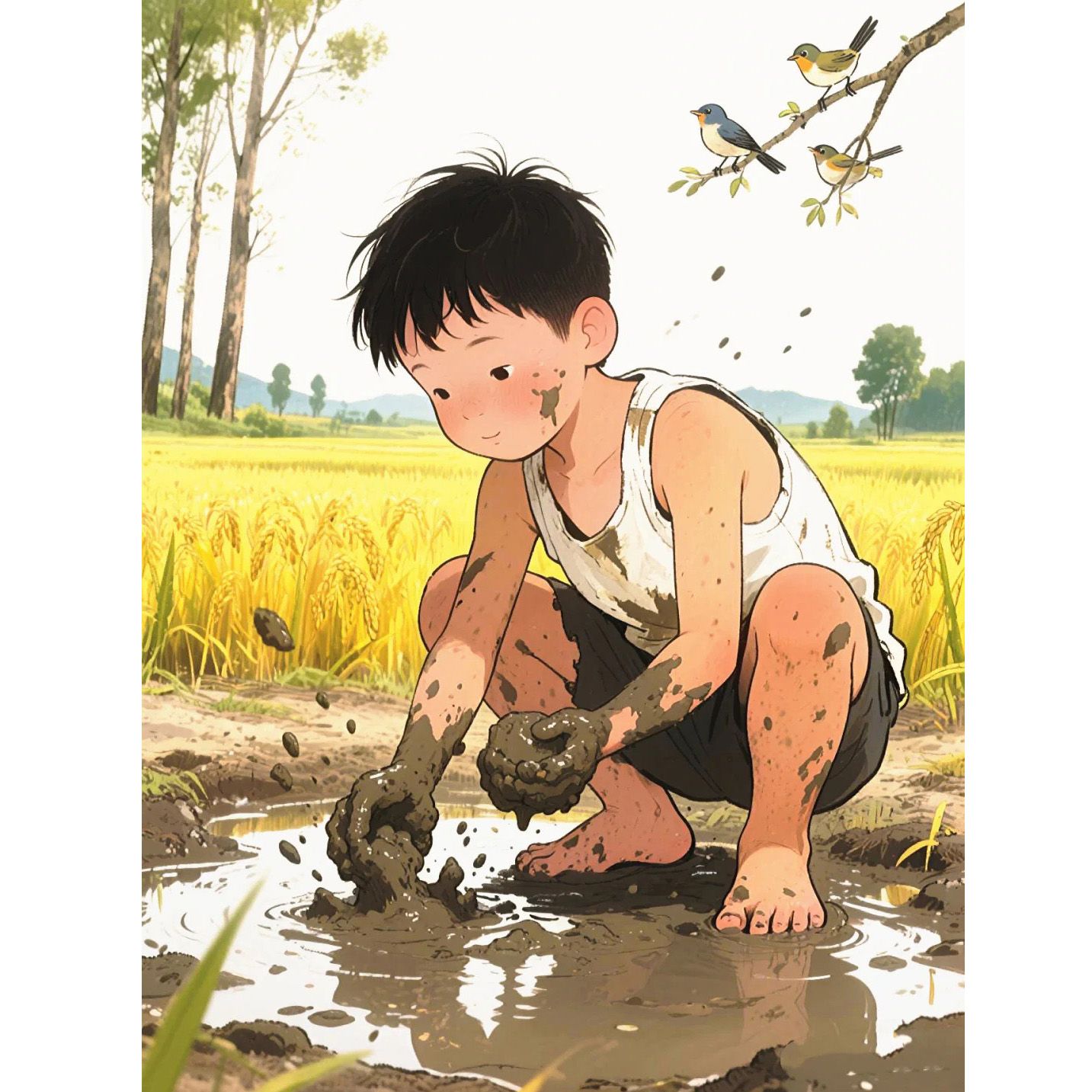 童年玩泥巴自粘贴画寝室客厅走廊出租屋装饰贴纸餐厅防不干胶贴纸