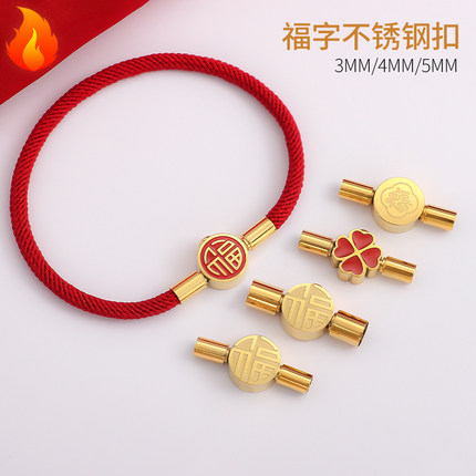 不锈钢福字红绳手链扣接头diy项链扣子配件牛皮绳编手绳链接扣