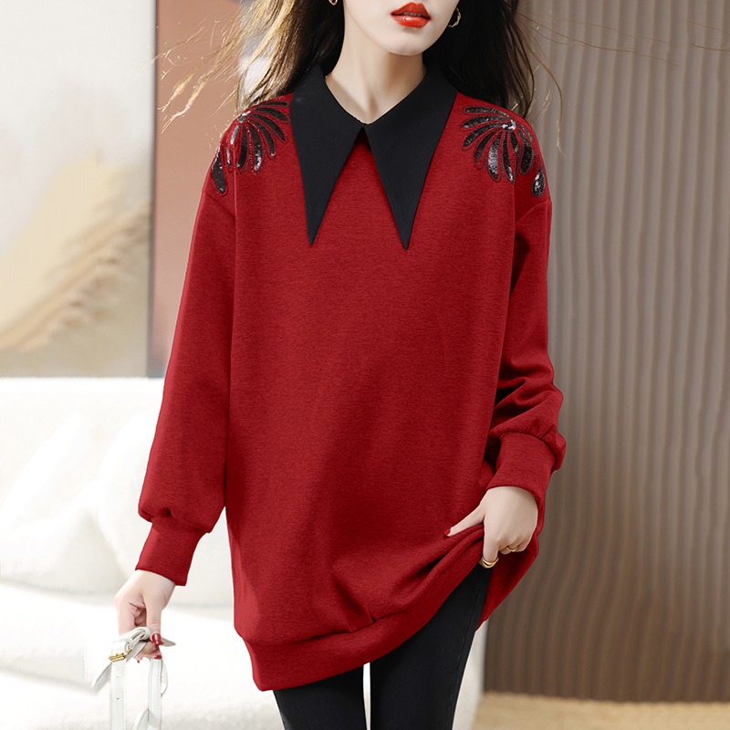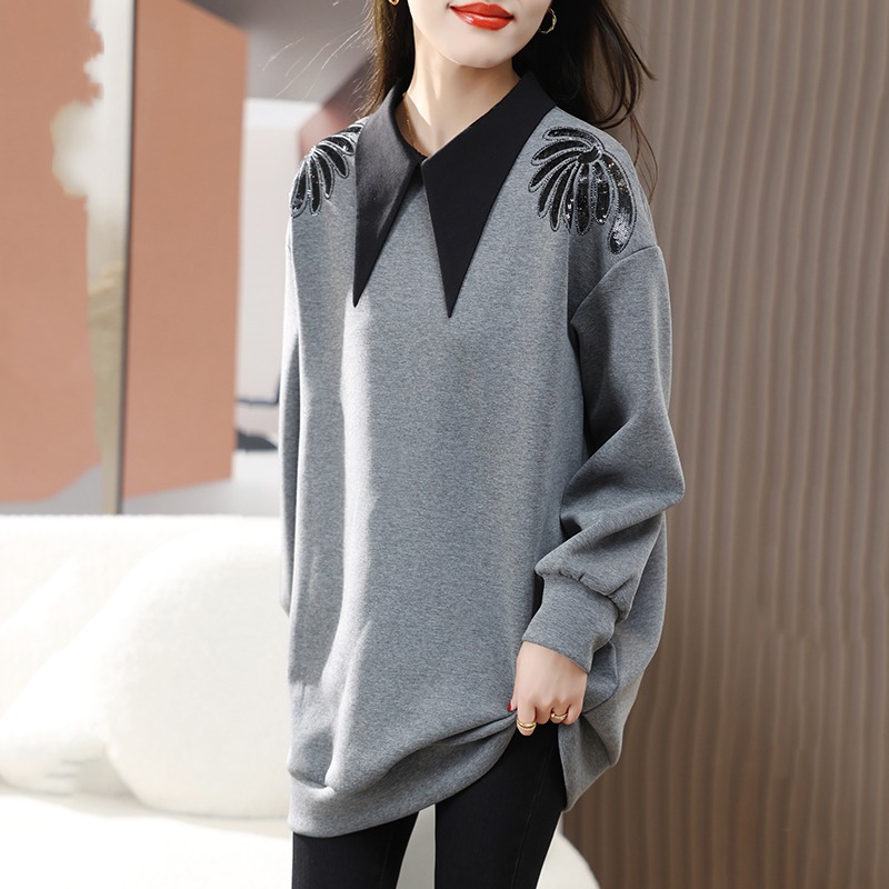 卫衣女士装春秋冬季2025年新款小个子宽松假两件时尚洋气中长上衣