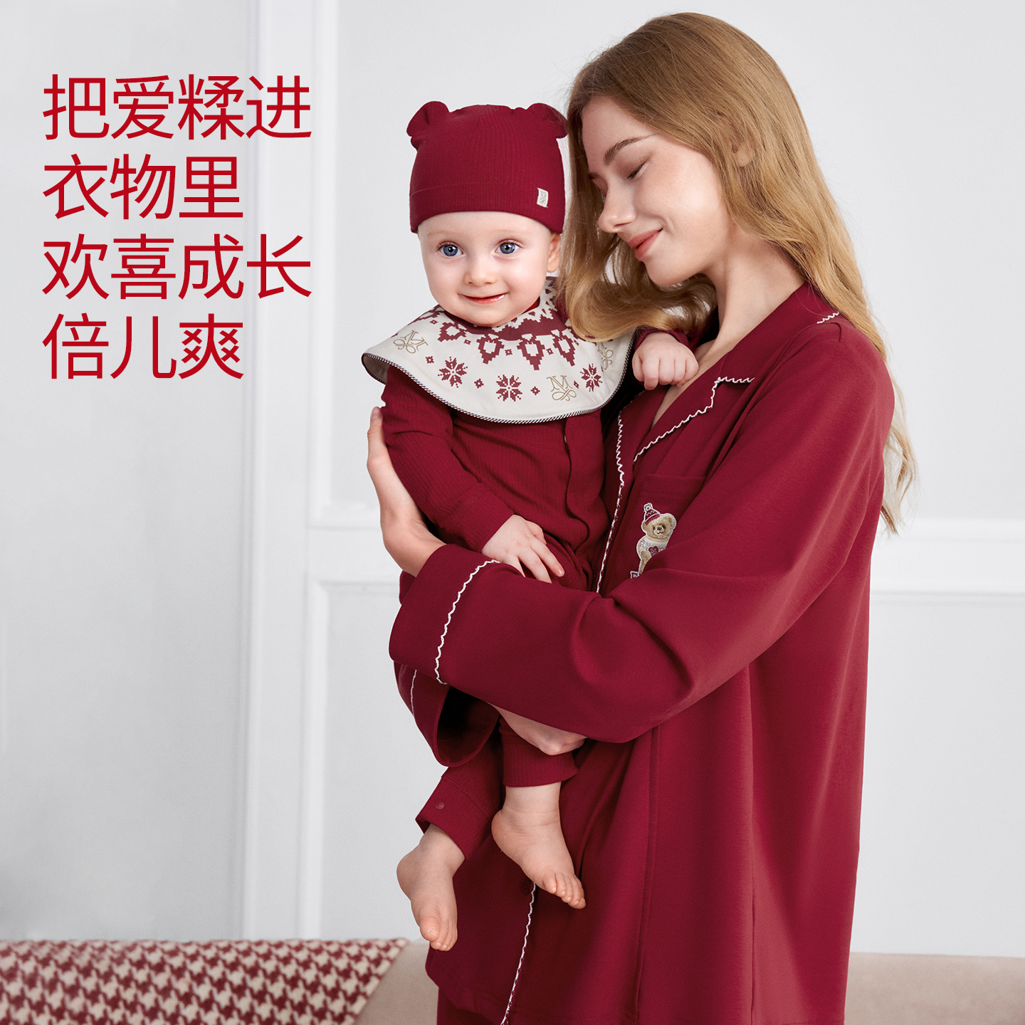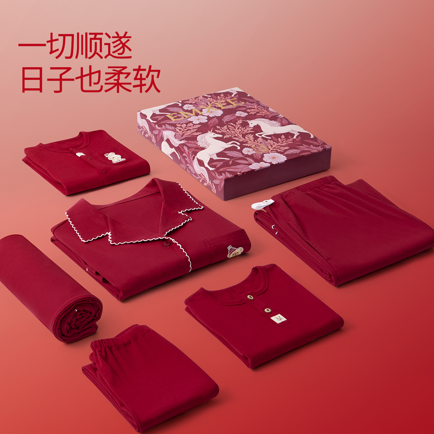 【红运礼盒】嫚熙冬纯棉新婚情侣马年本命年亲子套装月子服家居服