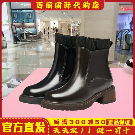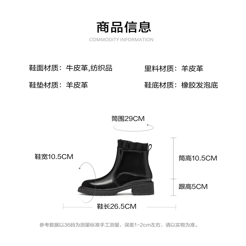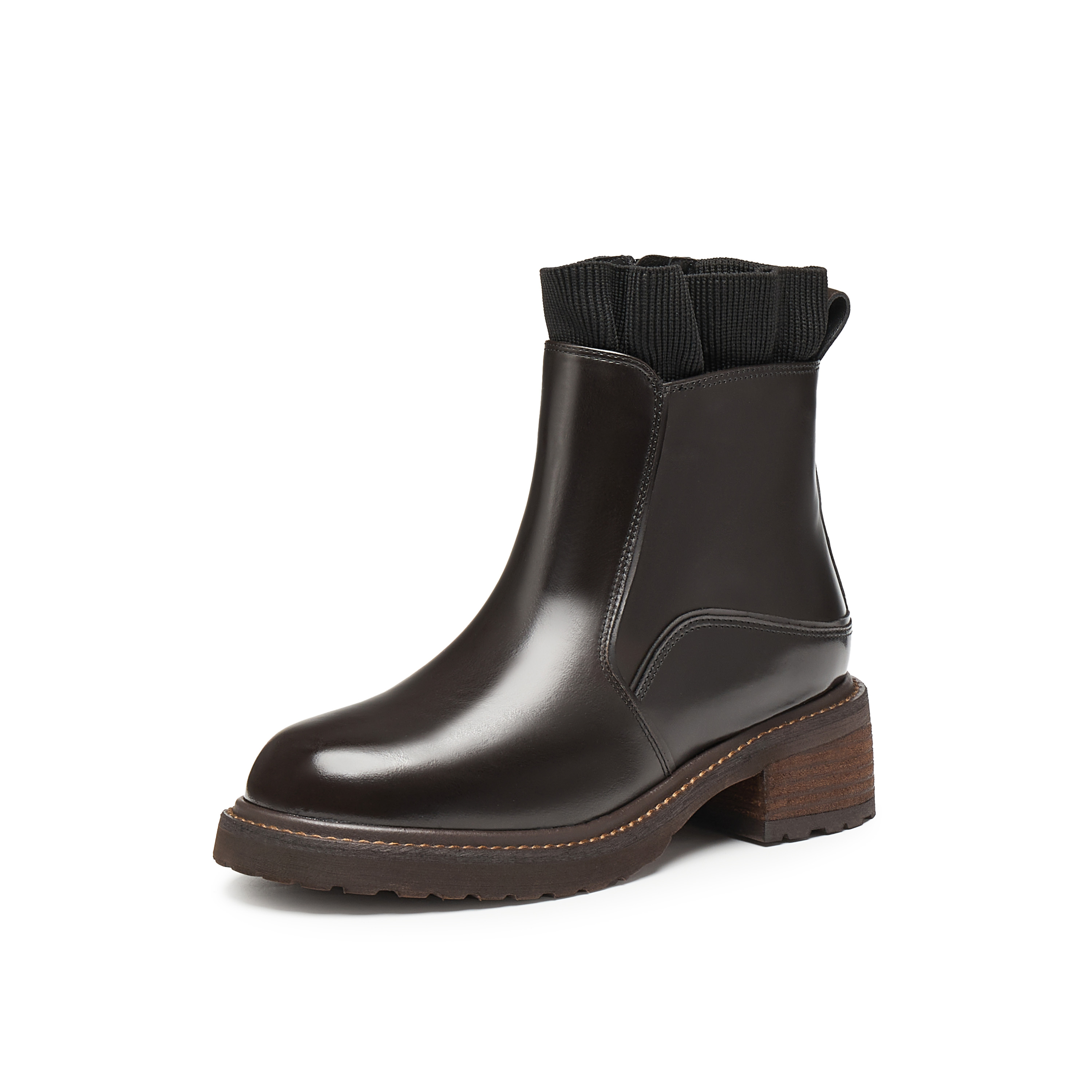 真美诗2024冬季新款女鞋真皮波浪边粗跟优雅时装短靴女靴J8891DD4