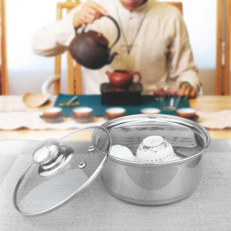 三洽304不锈钢茶洗锅消毒锅 奶瓶茶具消毒洗杯盆 茶台平底茶洗盆