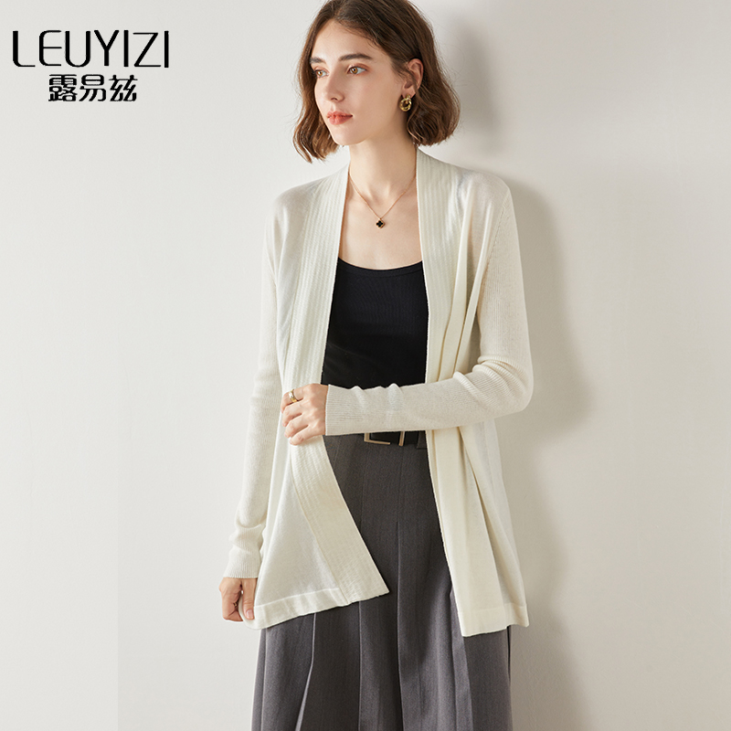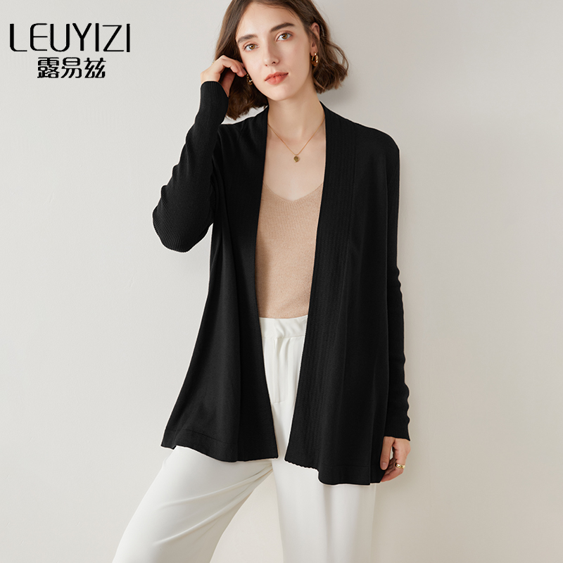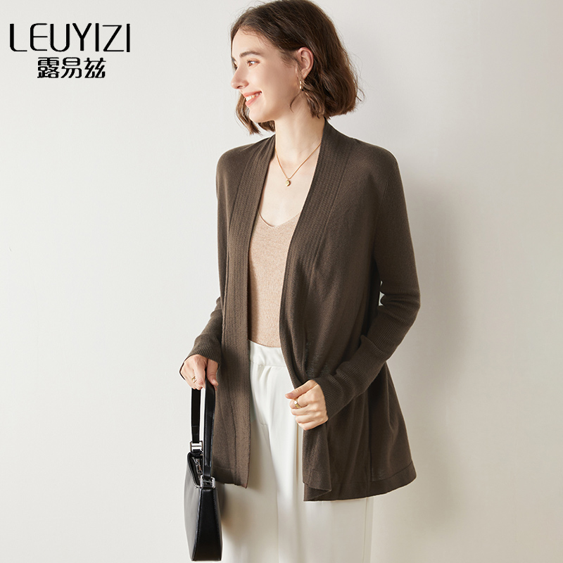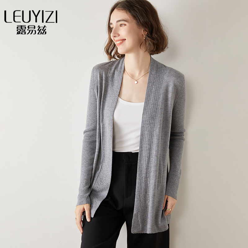 中长款针织开衫外套女2024早秋新款长袖V领宽松羊毛女士外搭披肩