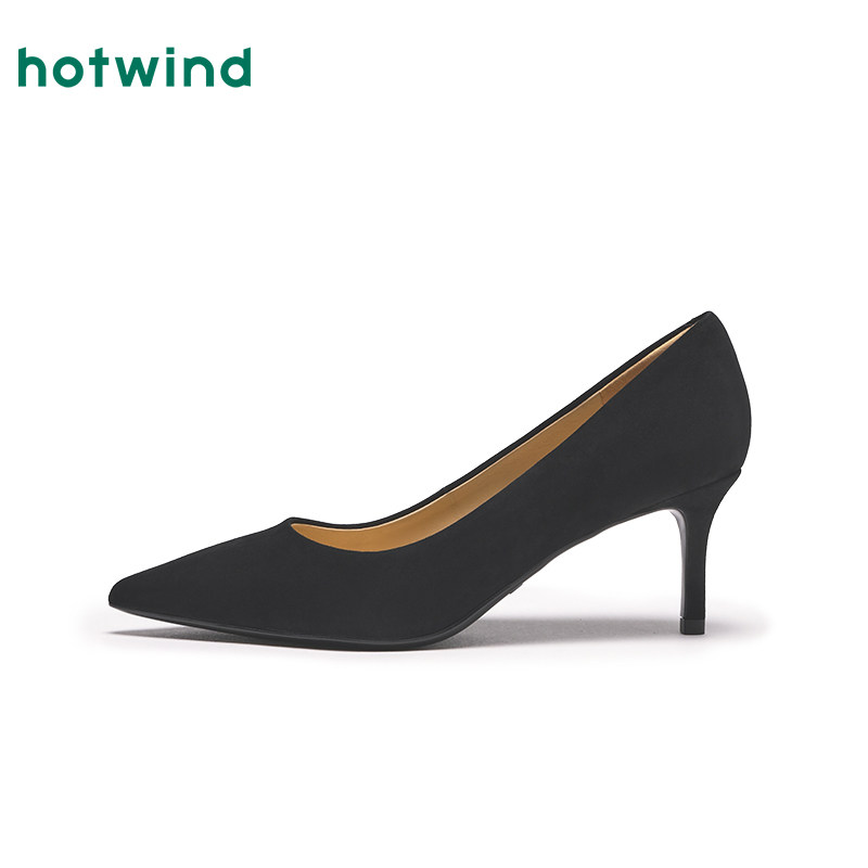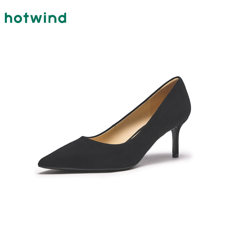 热风黑色高跟鞋女款2025年春季新款法式尖头浅口细跟单鞋气质女鞋