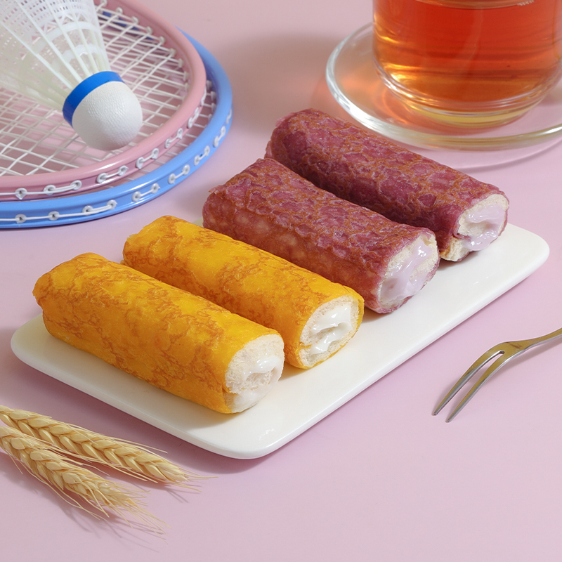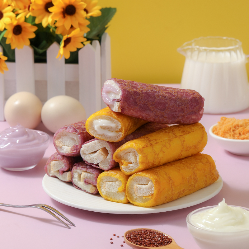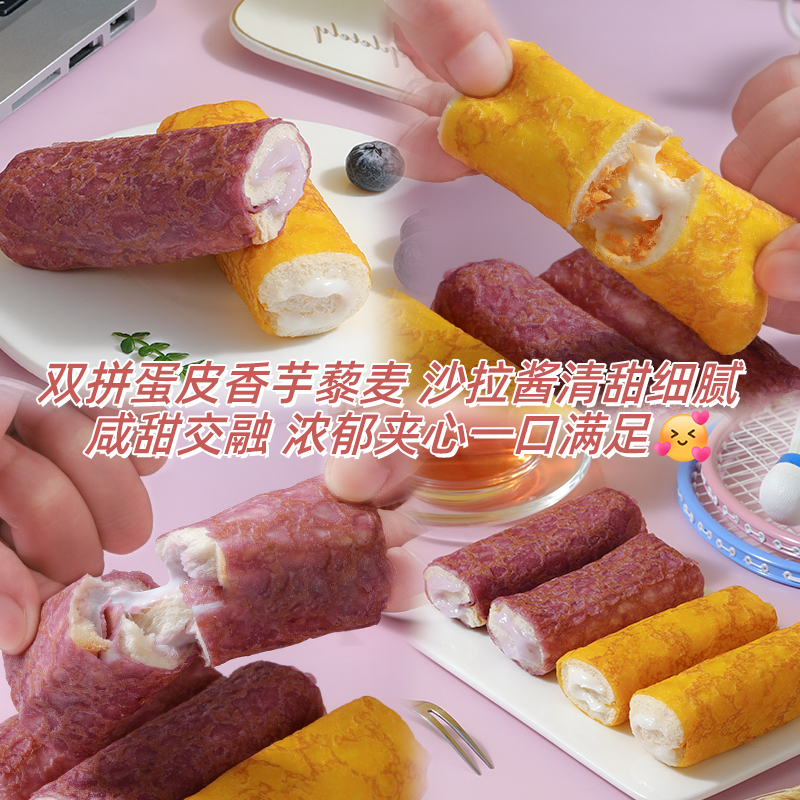 爆浆双拼蛋皮面包藜麦芋泥肉松双拼蛋糕早餐夹心流心甜品小零食品