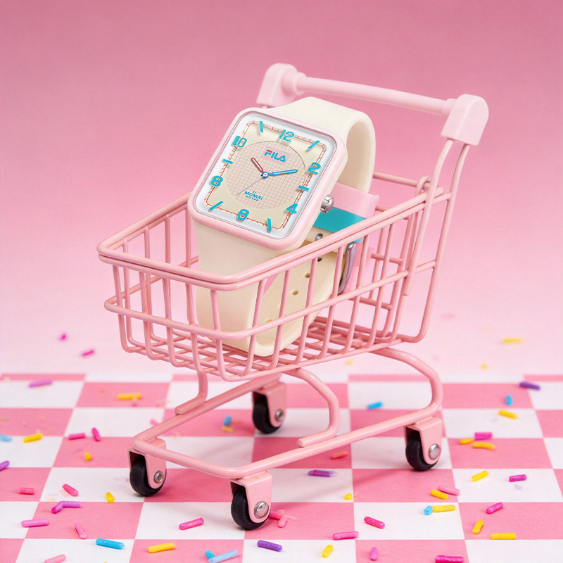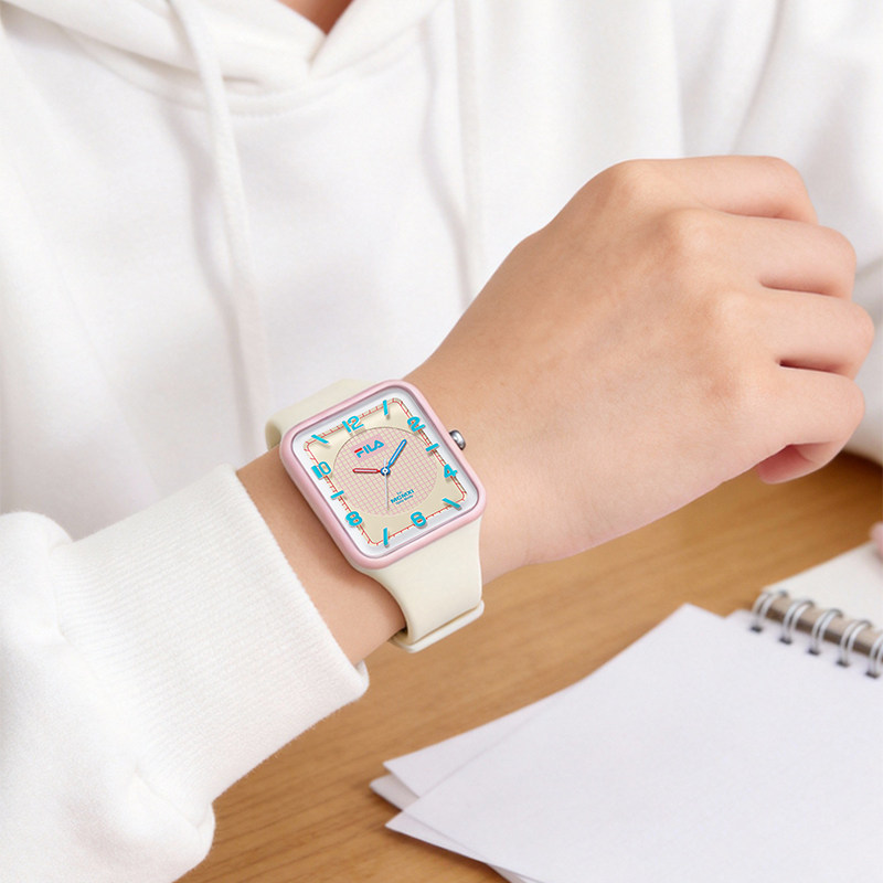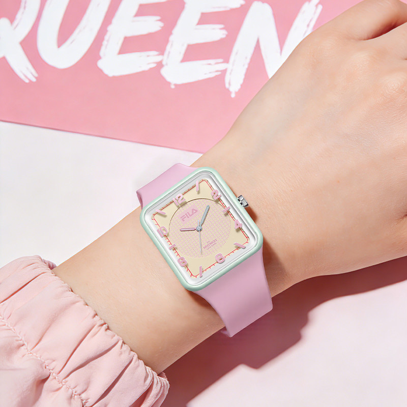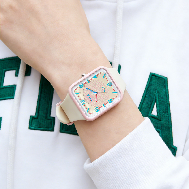 FILA斐乐卡通手表学生初高中女生腕表小方壳石英硅胶表带防水6759