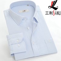 三利 男士长袖碎花修身商务寸衫 爸爸上班中青年衬衣春季薄款上衣