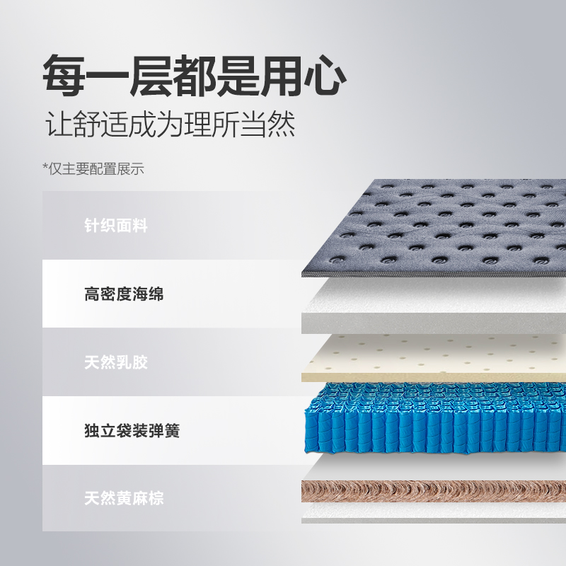 曲美家居防螨抑菌透气床垫黄麻乳胶独袋弹簧双面可用 黑骑士床垫