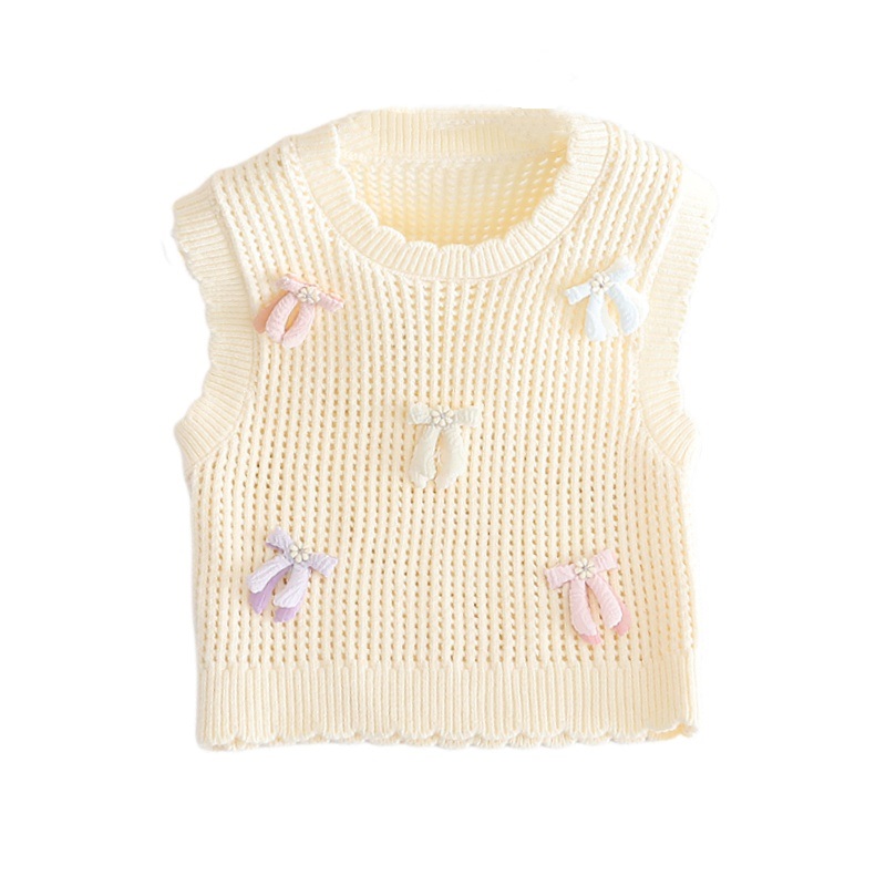 女童针织衫马甲春秋2025新款宝宝马夹婴儿蝴蝶结毛衣背心外穿坎肩