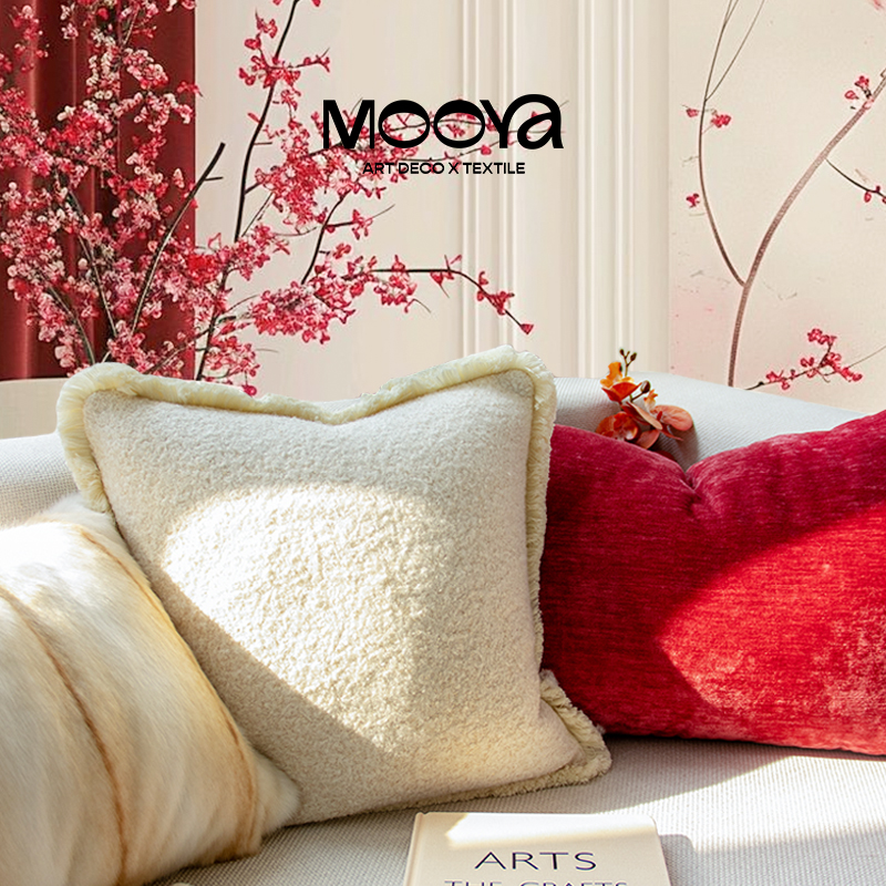 MOOYA棠梨绛雪 轻奢红色抱枕高级复古靠枕套法式沙发客厅靠垫飘窗