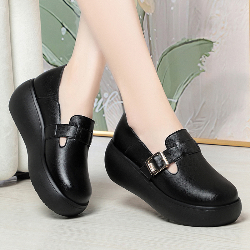 妈妈鞋单鞋坡跟圆头软底舒适大码秋季女鞋中年鞋子春秋款女士