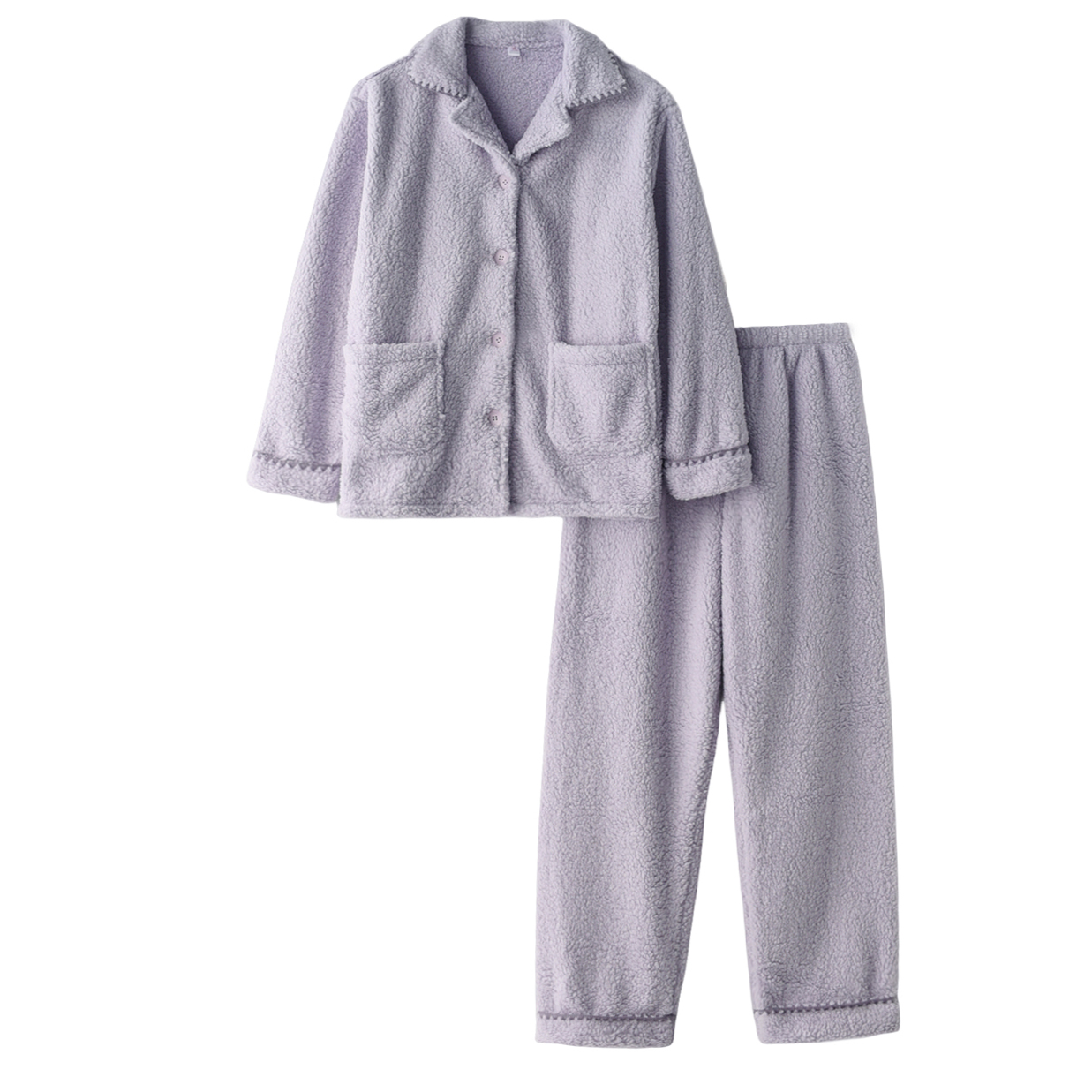 贝壳包边睡衣男女款秋冬季羊羔绒加厚保暖加绒长袖情侣家居服套装