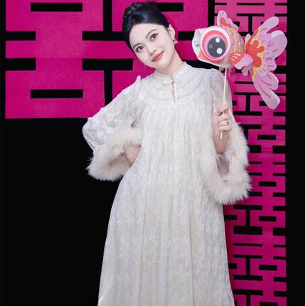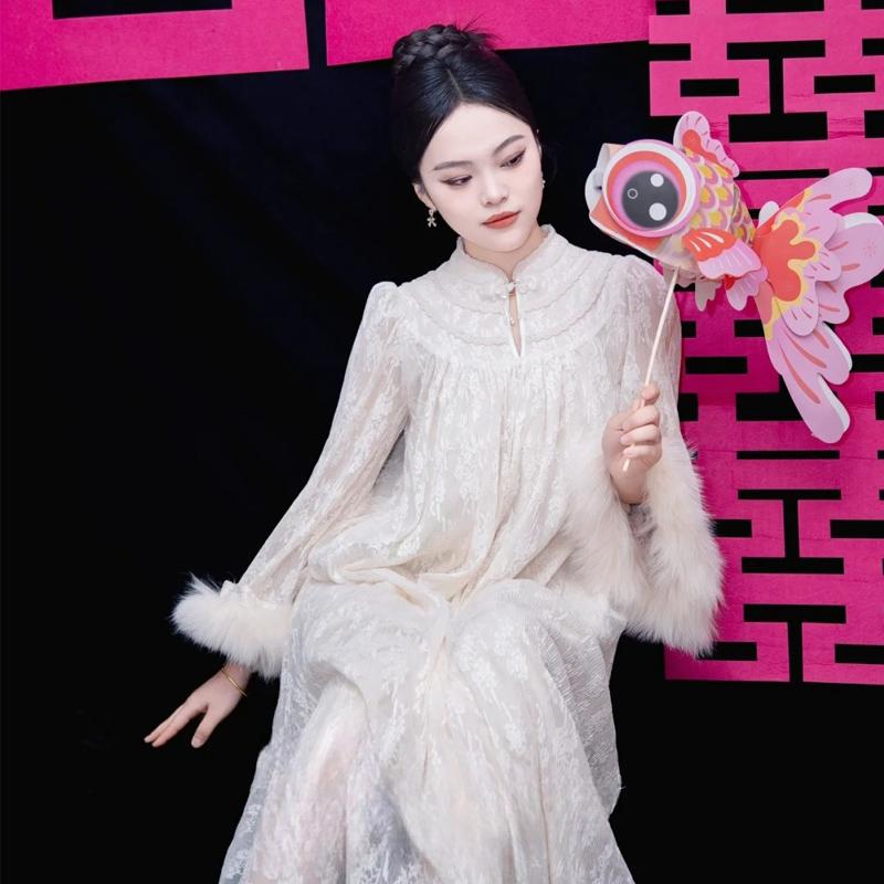新中式蕾丝晨袍新娘女2025春夏新款高级感日常可穿温柔长袖连衣裙