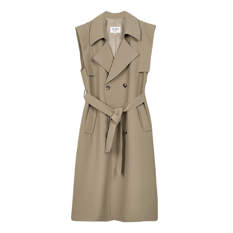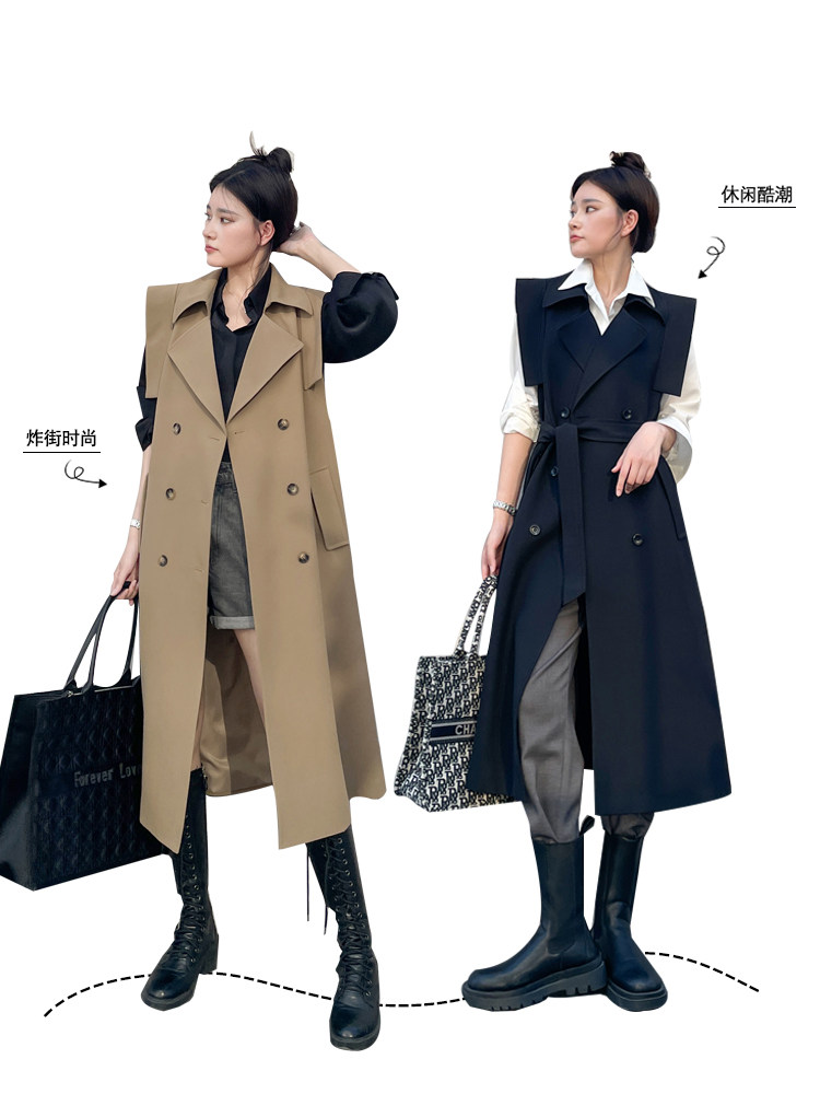 马甲女中长款风衣无袖外套春秋季新款高级感叠穿双排扣马夹大衣