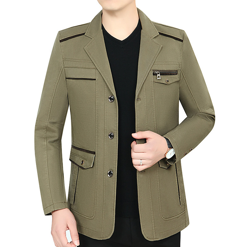新款中年夹克男春秋款爸爸装休闲薄款纯棉外套中老年人爷爷西装领