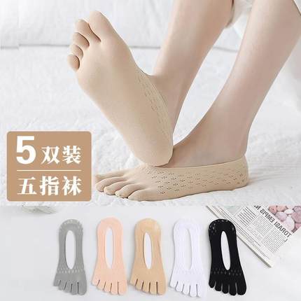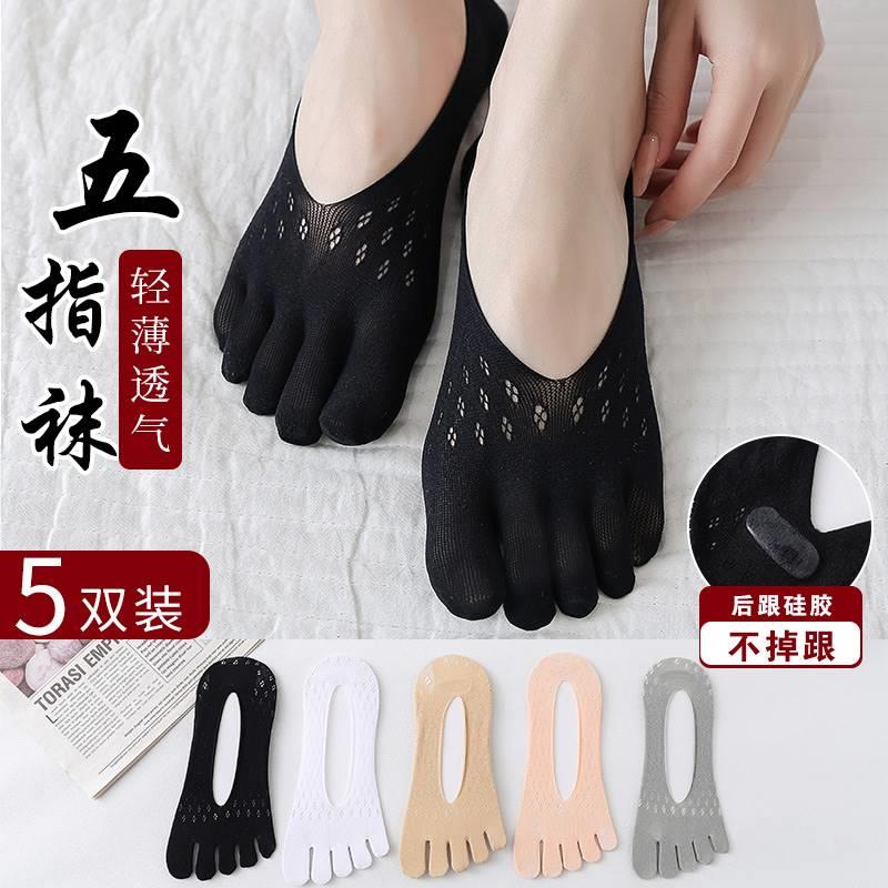 五指袜子女夏季薄款分趾浅口短袜硅胶防滑不掉跟冰丝网眼隐形船袜
